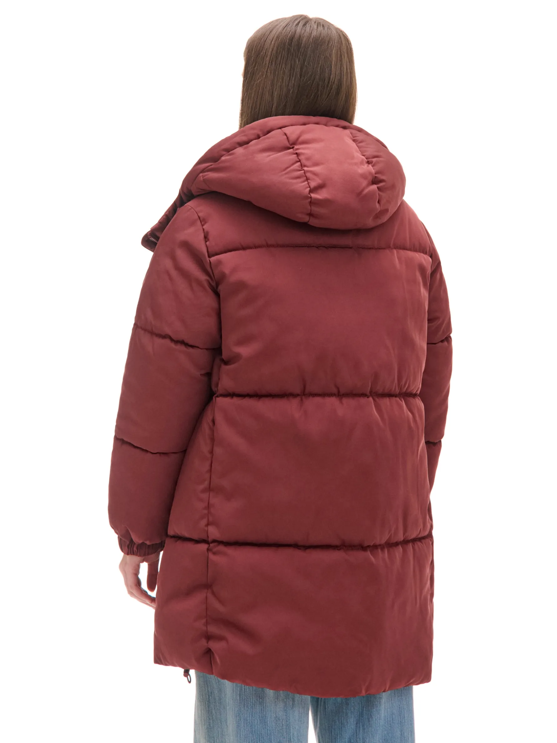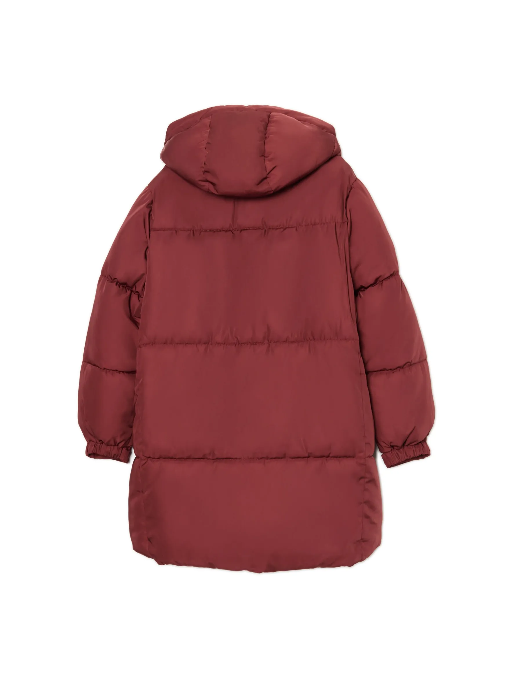Cropp Kurtki, Płaszcze*Bordowy pikowany płaszcz z kapturem kasztanowy