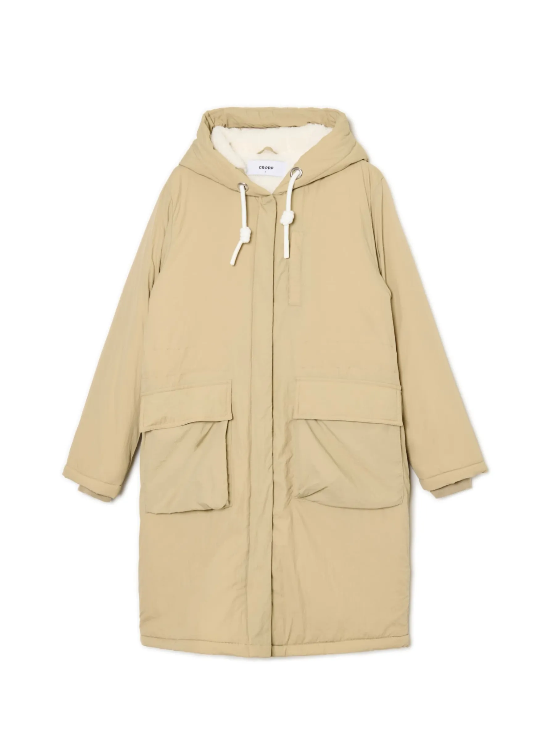 Płaszcz, który otula w środku i genialnie wygląda na zewnątrz, czyli model damskiej parki wykończonej na podszyciu ze sztucznego baranka. Wyposażona w podwójne kieszenie boczne i inne ciekawe rozwiązania, które warto odkryć. przejściowy płaszcz typu parka regularny krój miękka podszewka ze sztucznego baranka zapięcie na podwójny zamek listwa kryjąca z zapięciem na zatrzaski kaptur regulowany sznurkiem 5 kieszeni, w tym kieszenie cargo ściągacz tunelowy ze stoperami w talii