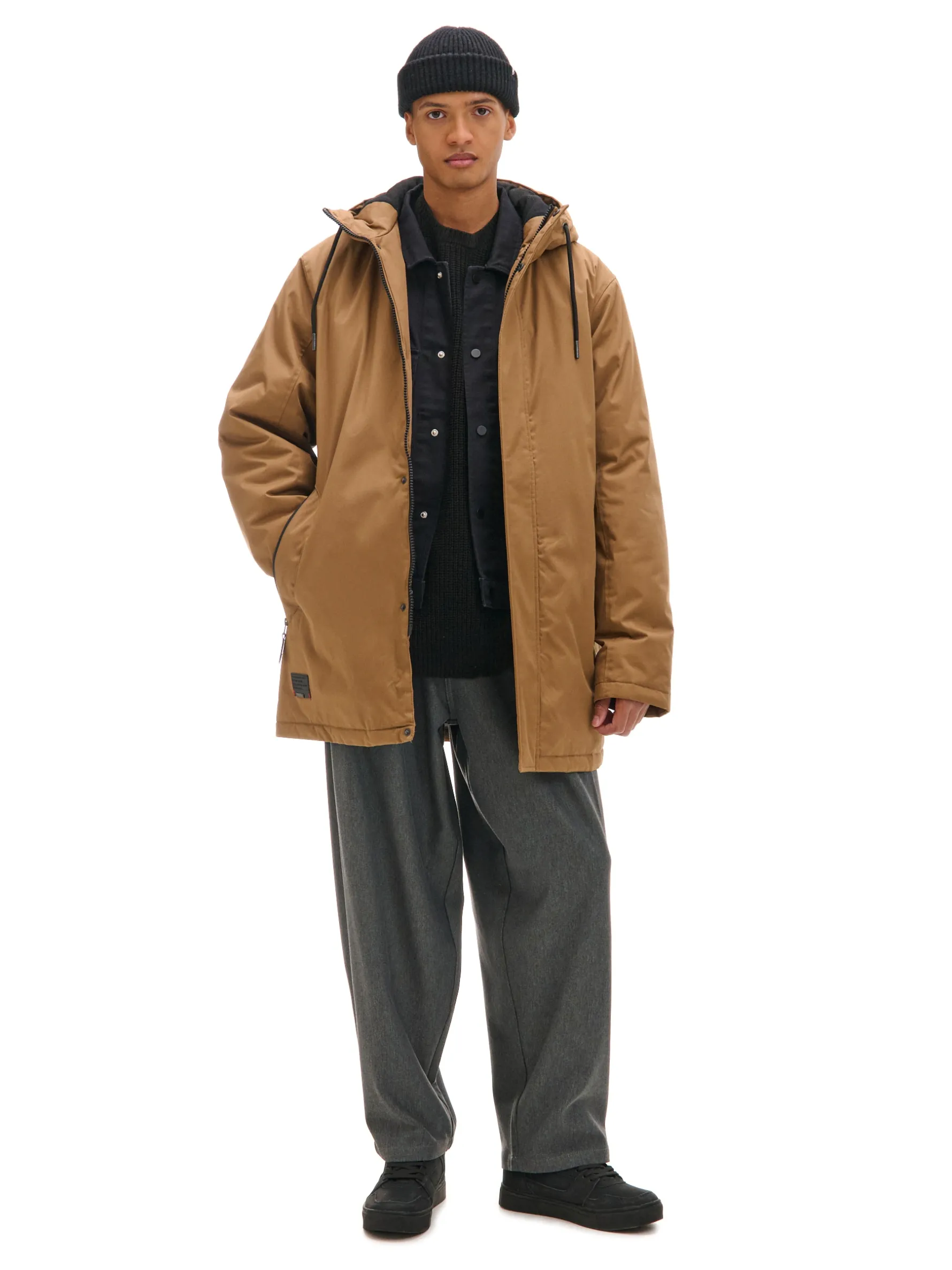 W każdej szafie jest miejsce na wygodny płaszcz z kapturem. Ten męski model uszyto z solidnej mieszanki tkanin z bawełnianym wykończeniem wewnątrz. Dodaliśmy podwójne kieszenie z przodu – otwarte na zmęczone ręce i z zamkami na Twoje itemki. regularny krój wykończenie na gładkiej podszewce z bawełny zapięcie na zamek ukryty pod listwą z napami kaptur regulowany troczkami długie rękawy wykończone elastycznym ściągaczem otwarte kieszenie po bokach kieszenie boczne z zamkami wewnętrzna kieszeń zapinana na rzep rozcięcie z tyłu z zapięciem na zatrzask ozdobna naszywka z przodu PROTECTION LEVEL 3rn Kurtka uszyta z tkaniny z większym ociepleniem, której właściwości zapewnią Ci nie tylko ochronę przed wiatrem i deszczem, ale też niskimi temperaturami.