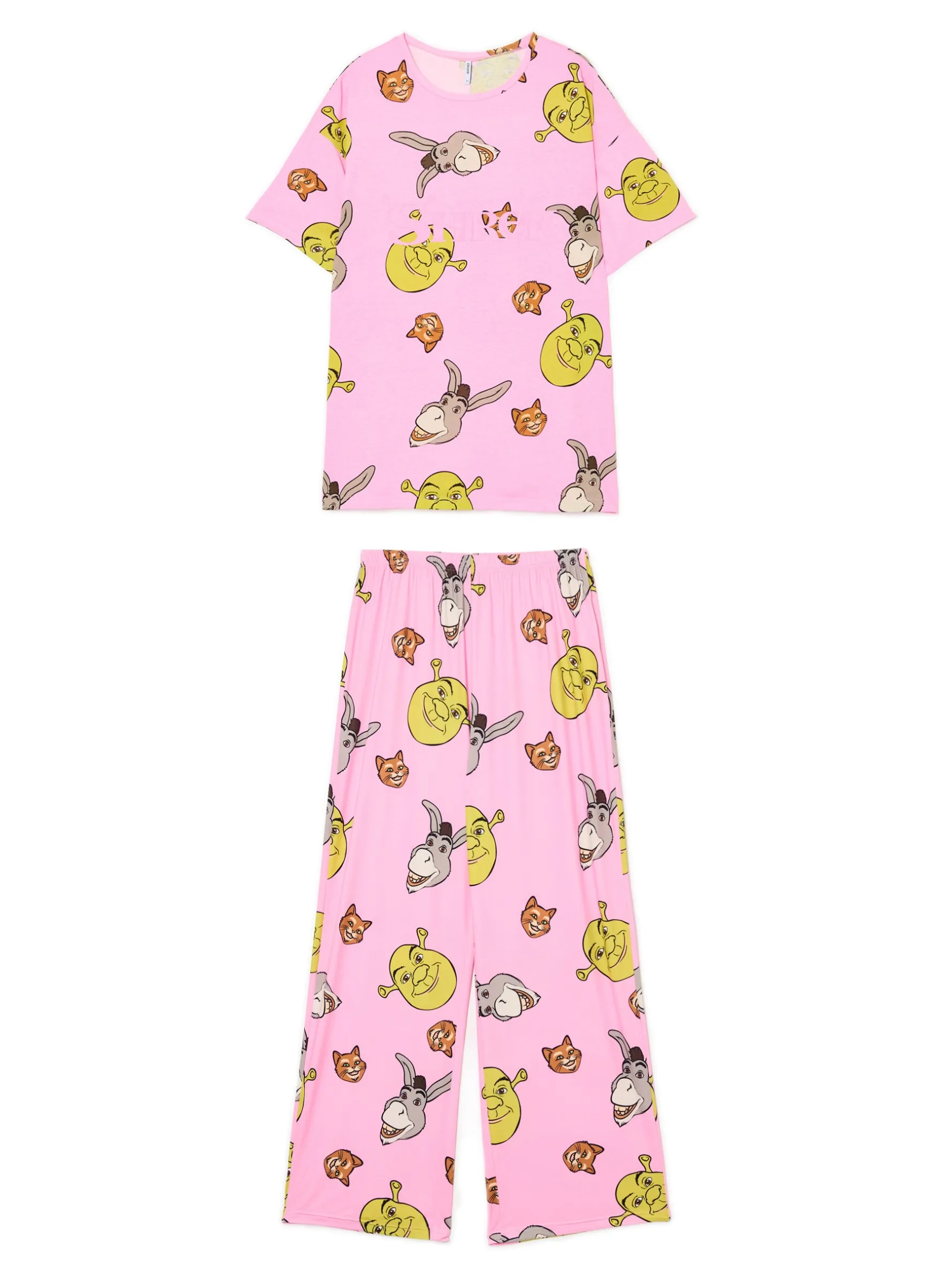 Shrek, Osioł i Kot to kolejna podróż pełna przygód! Łap damski dwuczęściowy secik do spania. T-shirt o luźnym kroju i spodnie z wygodną, elastyczną gumą zapewniają swobodę ruchów. Idealny item na świąteczny wypad do rodziny i nie tylko! 100% bawełny swobodny, luźny krój koszulka typu basic okrągły dekolt z lamówką krótkie rękawy spodnie straight fit elastyczna guma w pasie długie, proste nogawki kolorowy nadruk all over z bohaterami filmu Shrek Dreamworks Shrek © DreamWorks Animation LLC. All Rights Reserved.