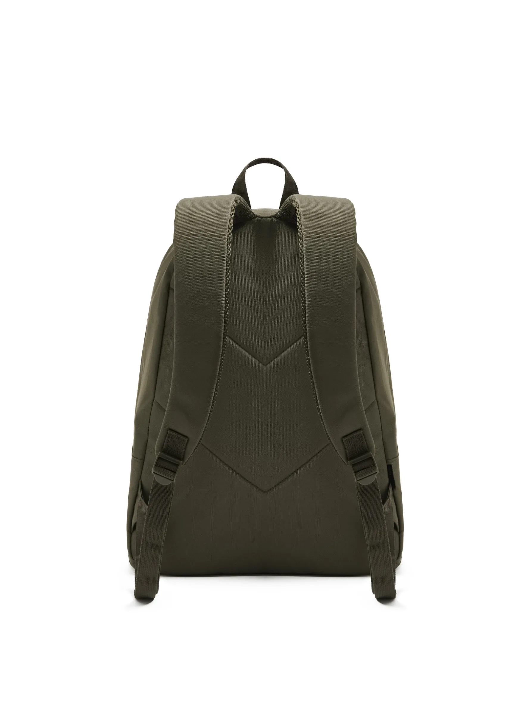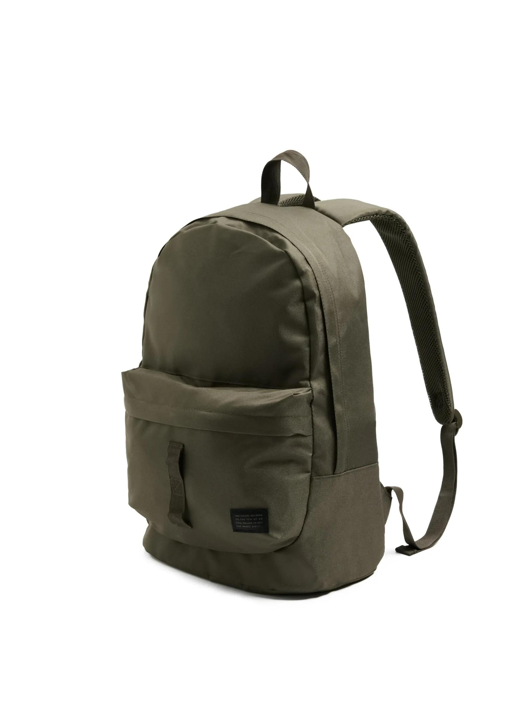 Męski plecak typu basic, uszyty z łączonych materiałów w kolorze oliwkowym. Idealny do pracy, szkoły, czy spontaniczny wypad za miasto. regulowane, szerokie szelki miękki materiał przy paskach główna komora z zapięciem na zamek wewnątrz otwarta kieszeń dodatkowa kieszeń zewnętrzna z zapięciem na zamek poręczny uchwyt u góry naszywka z przodu Wymiary plecaka: 48cm x 35cm x 15cm