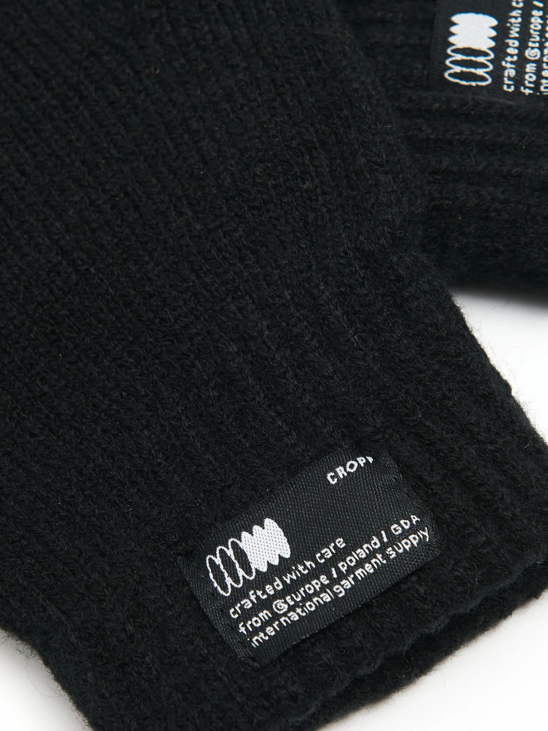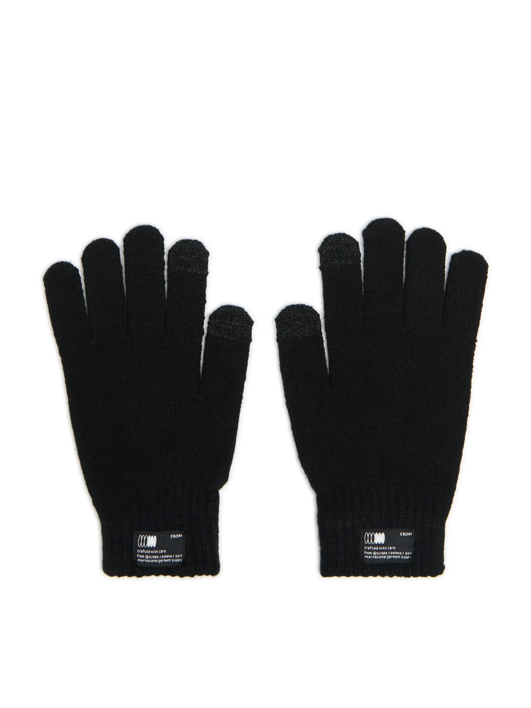 Klasyczne pięciopalczaste męskie rękawiczki uszyte z trwałej, chroniącej przed wiatrem dzianiny w kolorze czarnym. uszyte z gładkiej tkaniny prosty krój naszywka Cropp