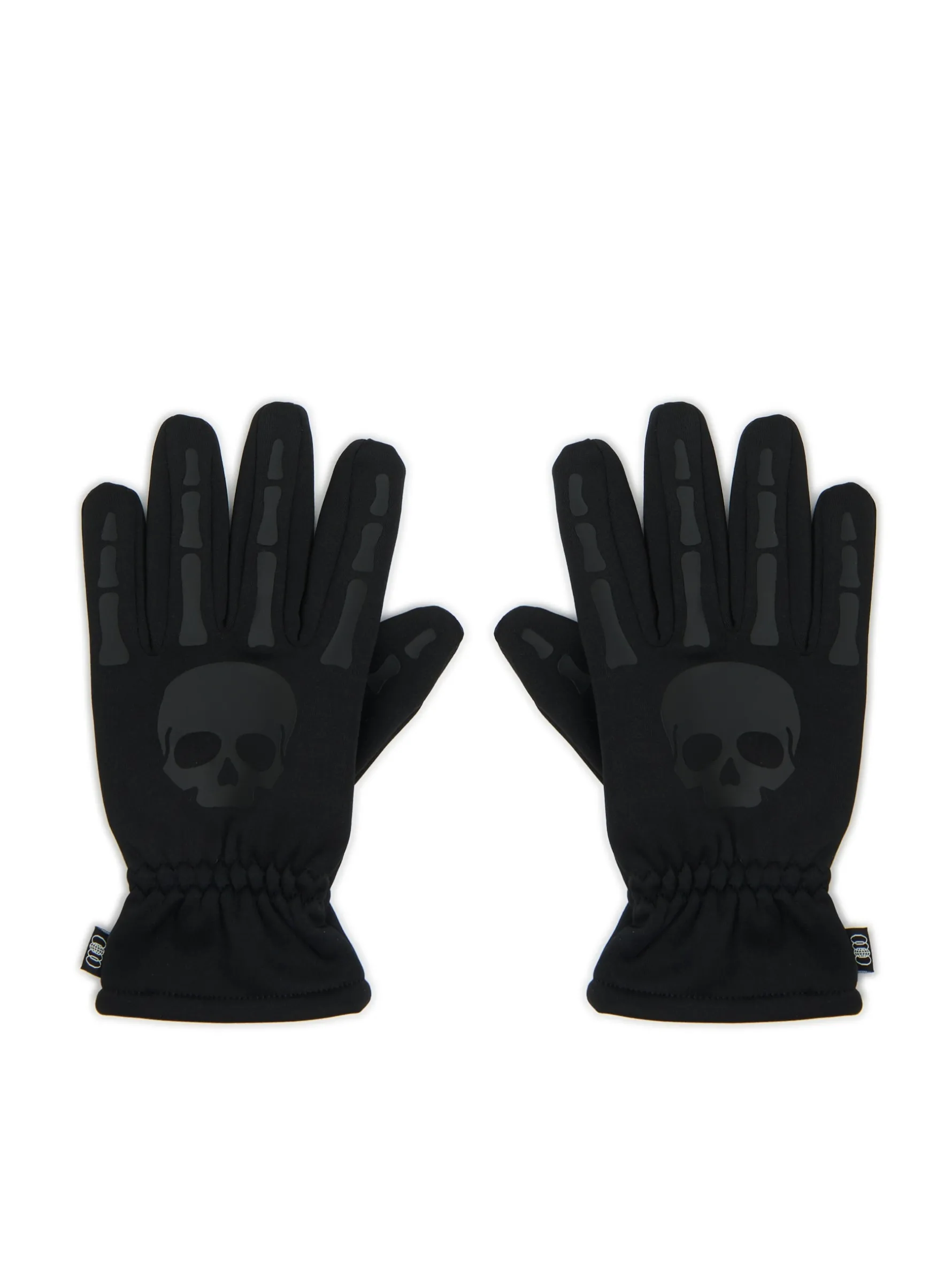 Męskie rękawiczki uszyte z miękkiej w dotyku dzianiny. Delikatny ściągacz przy nadgarstkach zapobiega unoszeniu się materiału. Na zewnętrznej stronie grafika z motywem kościotrupa. Dzięki naszywkom na palcach możesz swobodnie korzystać ze smartfona. przyjemny w dotyku materiał prosty krój nadruk z motywem czaszki