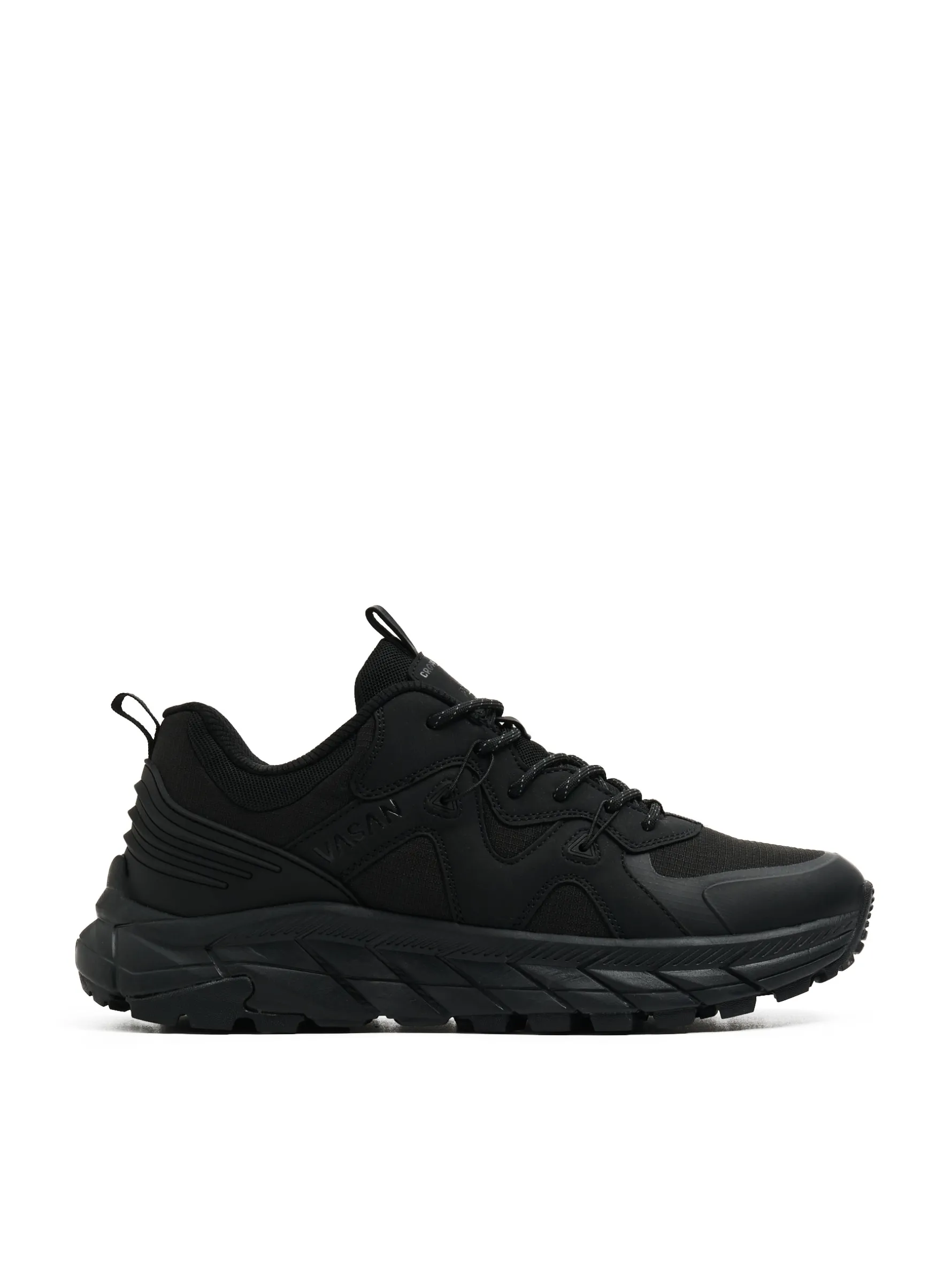 Czarne męskie sneakersy typu chunky z elastyczną cholewką i solidną podeszwą. Wyposażone w gumowe wstawki chroniące przed uszkodzeniami i sznurowadła z efektem reflective. Idealne na wieczorne, spontaniczne wypady – feel safe with Cropp! sznurowane sneakersy chunky z łączonych materiałów gruba podeszwa z termoplastycznej gumy wiązane na świecące w ciemności sznurówki lekkie gąbkowanie wokół kostki wygodne uchwyty do wkładania i zdejmowania butów naszywka Cropp