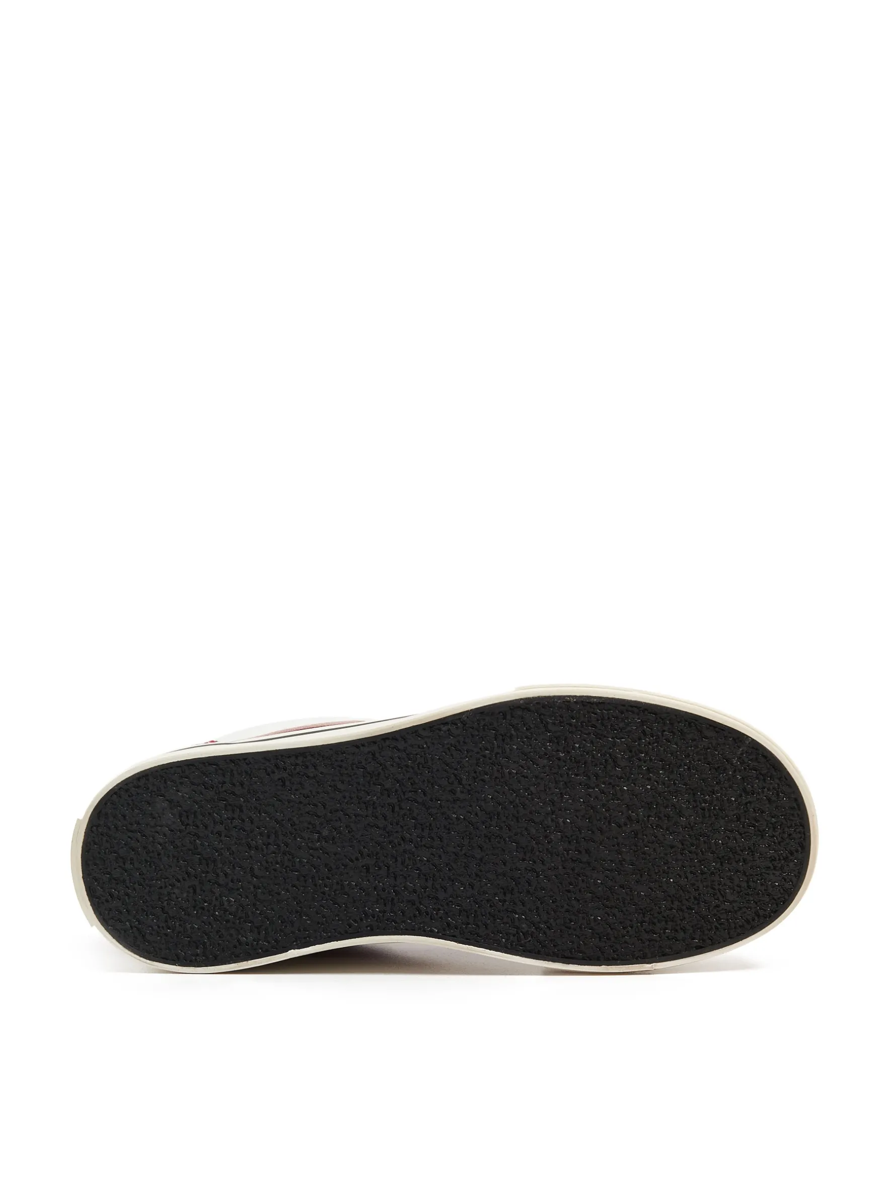 Damskie sportowe sneakersy w kolorze czerwonym z białymi naszywkami w kształcie fali. Ready for summer! cholewka wykonana z trwałej mieszanki tkanin płaskie podeszwy o sportowym fasonie wiązanie na białe sznurowadła uchwyt na tylnej części – wygodny podczas zakładania butów