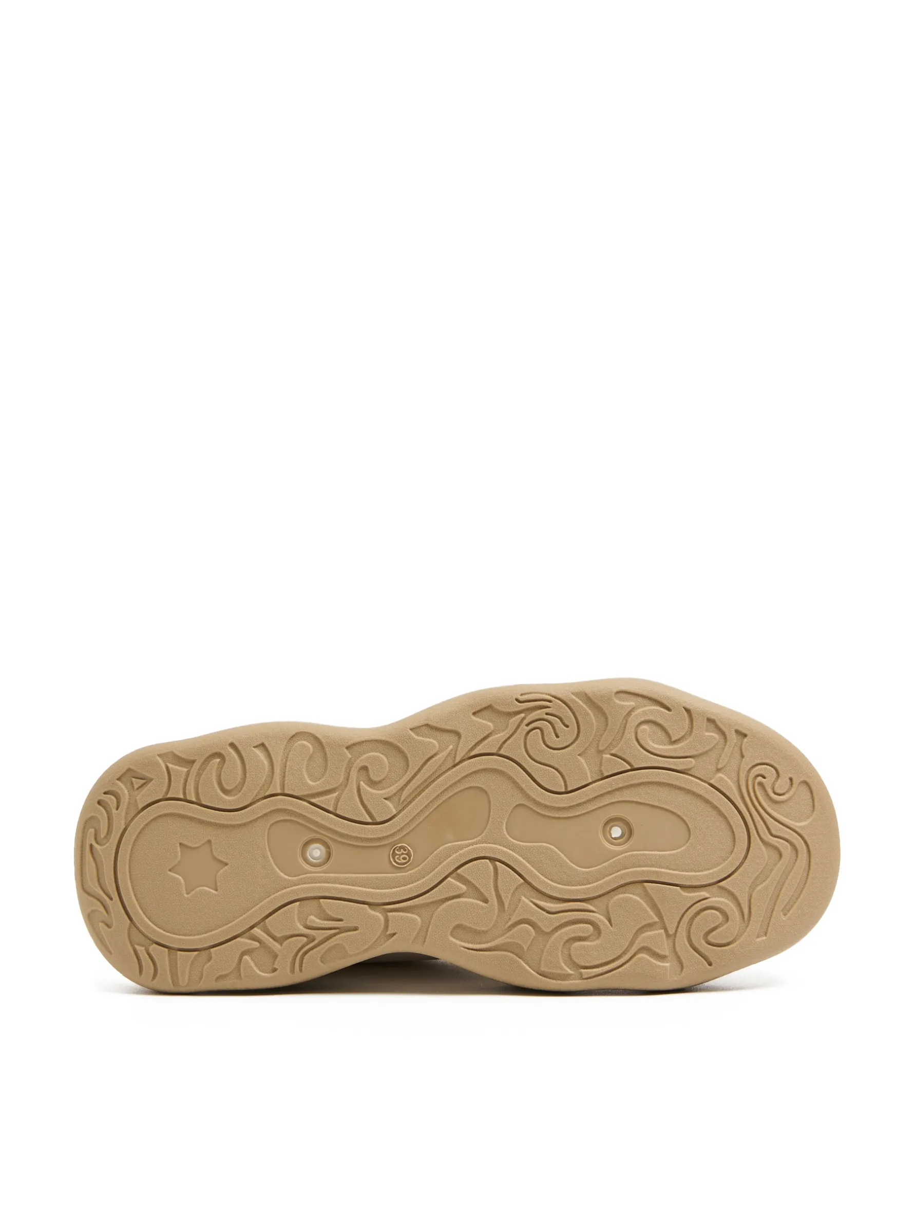 Damskie buty rekreacyjne w kolorze kremowym, wykonane z łączonych materiałów. Z wytrzymałą podeszwą o nietypowym kształcie fal, idealnie nadają się do różnego typu aktywności. elastyczna cholewka z łączonych materiałów wysoka, gruba podeszwa z gumy termoplastycznej wiązane na płaskie, białe sznurówki