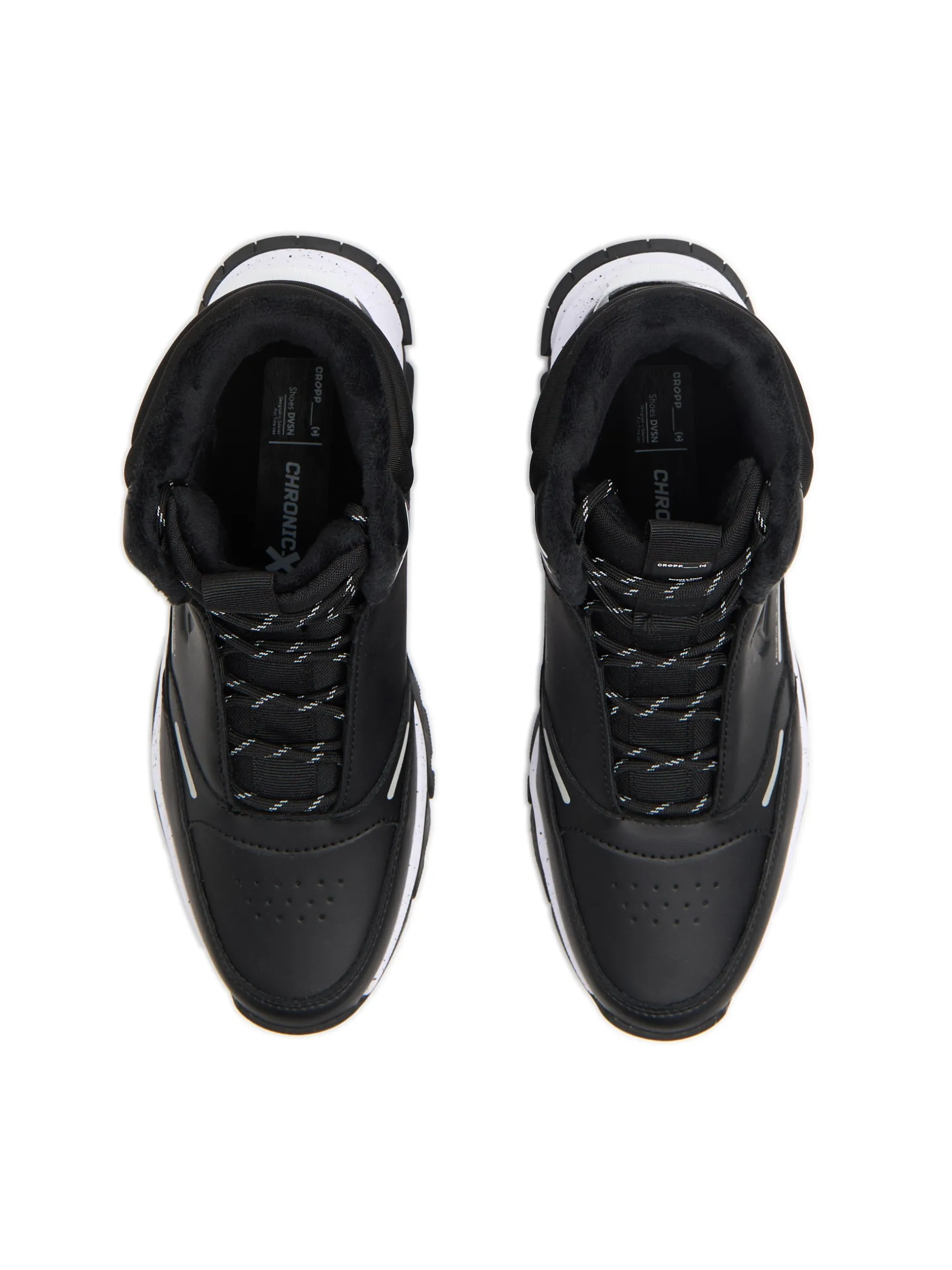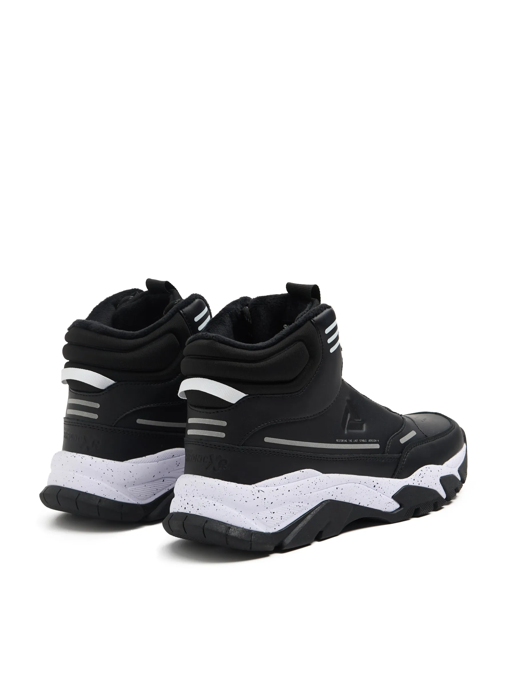 Męskie sneakersy za kostkę wykonane z mieszanki solidnego materiału i imitacji skóry. Dodatkowe wypełnienie w kostce i języku zapewnia ciepło i amortyzację. Wejdź w zimę na pełnej z naszymi butami! sznurowane sneakersy z ociepleniem cholewka ze wstawkami ze sztucznej skóry lekkie gąbkowanie wokół kostki delikatne wypustki z przodu usprawniające przepływ powietrza dodatek lycry wmacnia język i zapobiega zabrudzeniom wiązane na elastyczne, prążkowane sznurówki podeszwa wykonana z mieszanki phylonu i gumy termoplastycznej wzmacniany nosek zwiększający ochronę przed zużyciem wygodne uchwyty do wkładania i zdejmowania butów naszywka Cropp ozdobne naszywki metodą emboss detale z efektem reflective