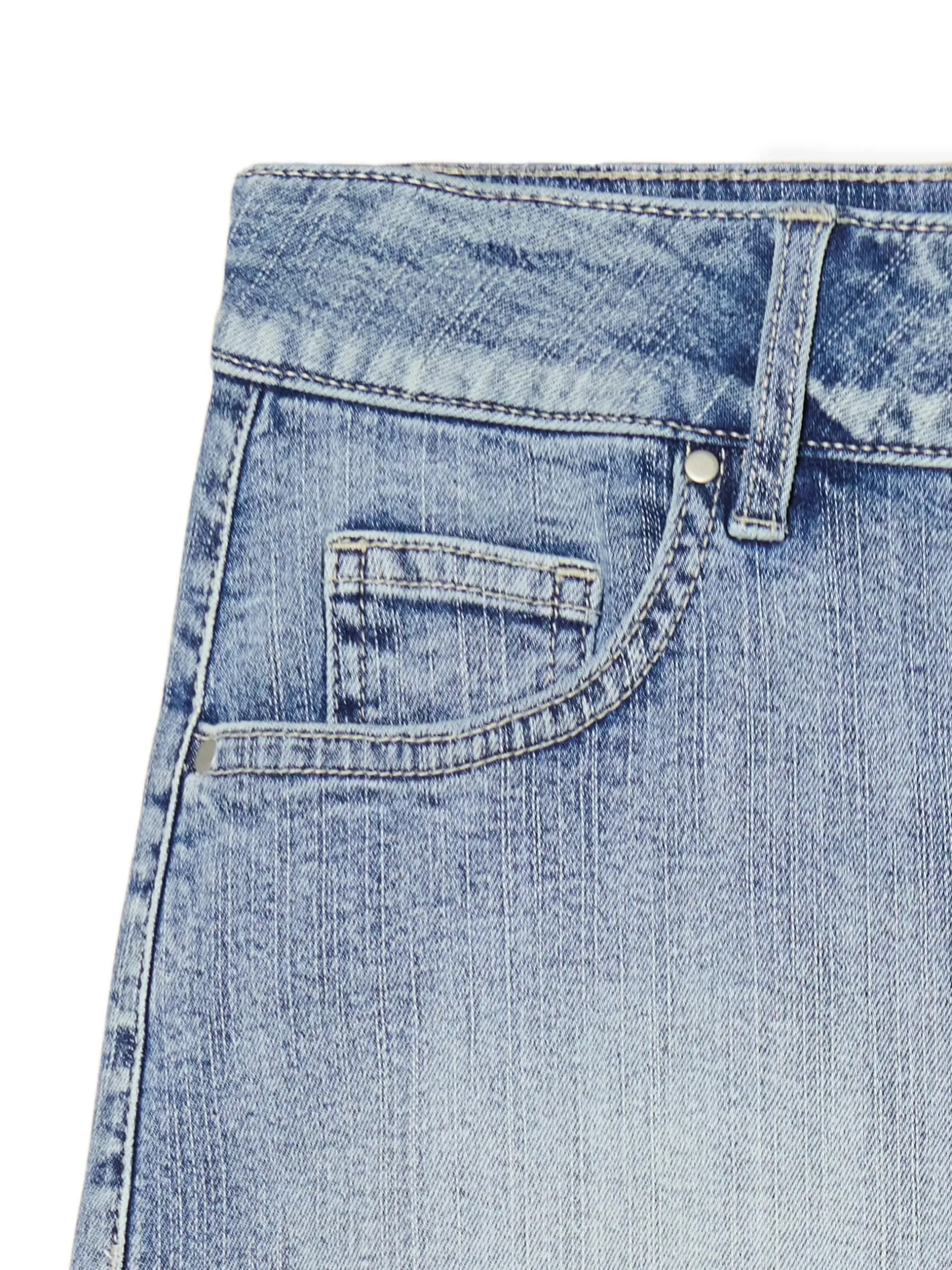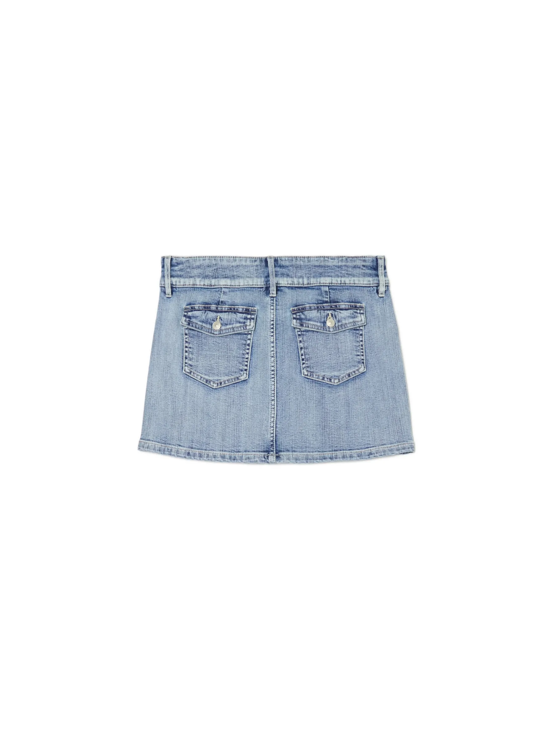 Spódnica damska o długości mini uszyta z denimu o klasycznym kolorze w stylu vintage. Fituje ze sneakersami, jak i półbutami. bawełna z dodatkiem elastycznych włókien długość mini zapięcie na zamek i guzik pięć kieszeni tylne kieszenie zapinane na guziki zakładki modelujące z tyłu szerokie szlufki na pasek