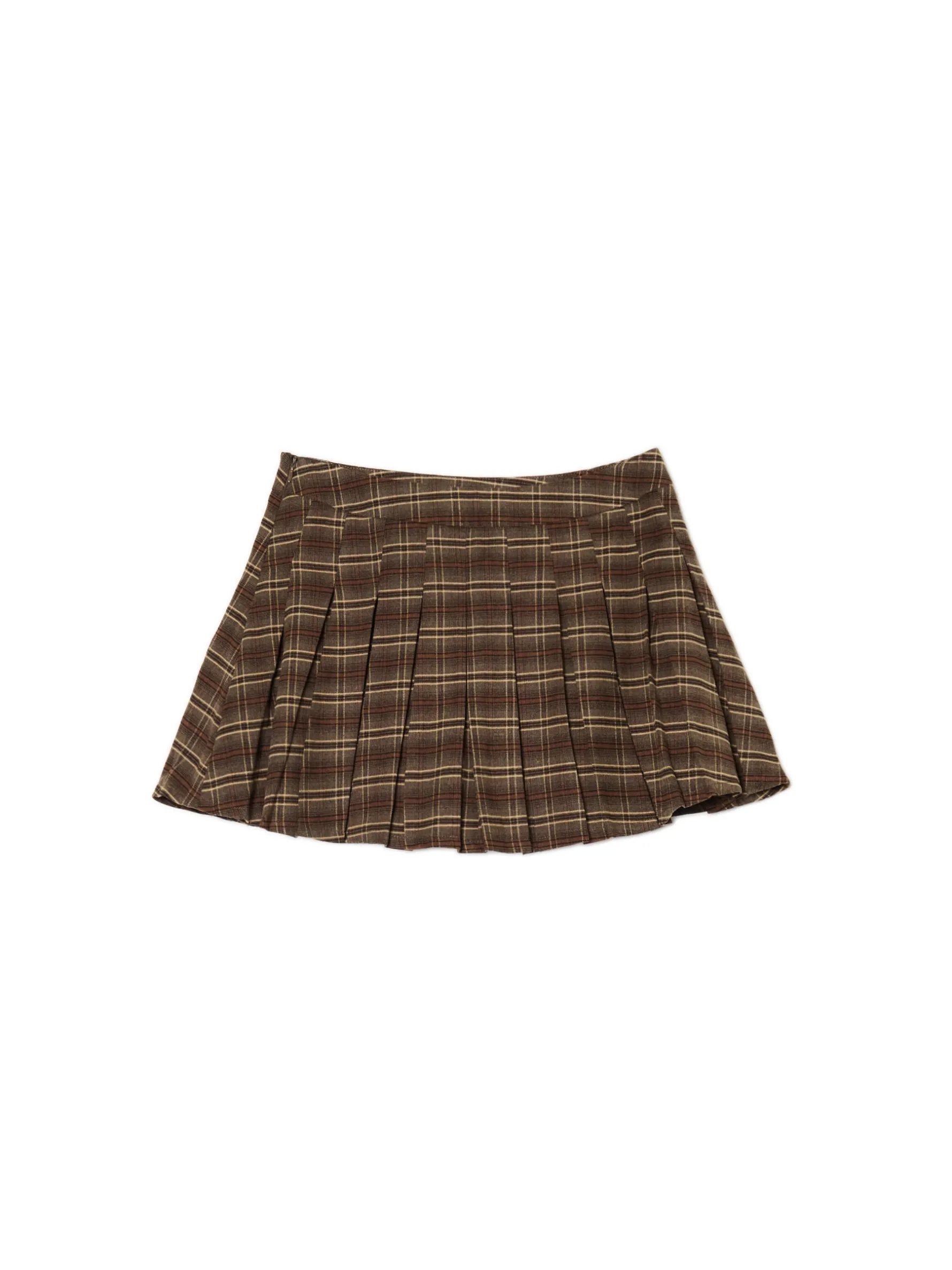 Spódnica damska o długości mini, uszyta z mieszanki tkanin z wiskozą. Posiada podszewkę w kształcie spodenek zapobiegającą unoszeniu się materiału. Dodatkowo plisy na całej długości i oldschoolowy wzór w kratę nadaje jej wyjątkowego stylu. uszyta z tkaniny z dodatkiem wiskozy długość mini wewnątrz podszewka w kształcie szortów zapięcie na kryty zamek boczny plisy na całej długości wzór w kratę na całej powierzchni