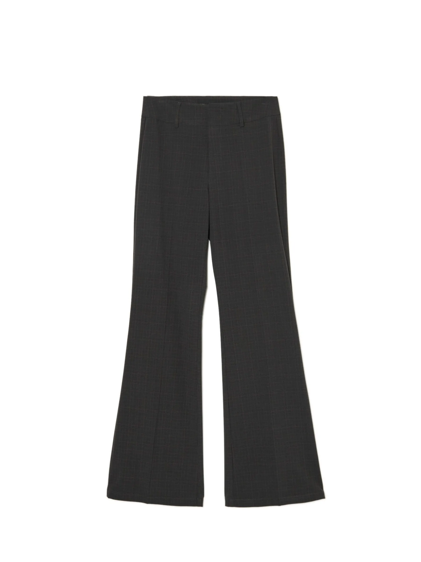 Damskie spodnie w kant z rozszerzanymi ku dołowi nogawkami. Dopasowana góra pięknie podkreśla linię bioder. Dostępne w kilku stonowanych kolorach. Zmatchujesz ten item zarówno z oficjalnymi stylizacjami, jak i casualowymi. spodnie o kroju flare uszyte z grubego i solidnego twillowego materiału zapięcie na haftkę, guzik i zamek rozszerzane ku dołowi nogawki z zaznaczonym kantem szerokie szlufki na pasek