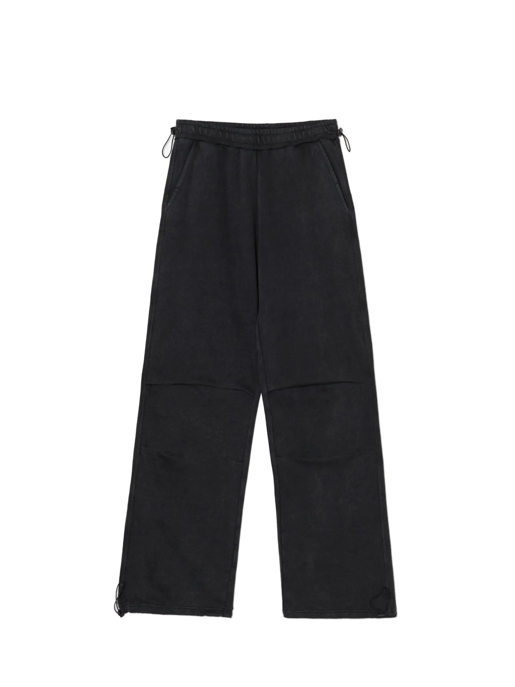 Damskie spodnie typu parachute uszyte z trwałej dzianiny z dodatkiem bawełny. Item wyposażony w elastyczne gumy w pasie i przy nogawkach, regulowane za pomocą stoperów. Dobierz do nich ulubione topy! dzianinowy materiał z bawełną długie, swobodne nogawki wykończone ściągaczem regulacja dołu i pasa za pomocą sznurka ze stoperem elastyczna gumka w pasie otwarte kieszenie z przodu ozdobne zakładki