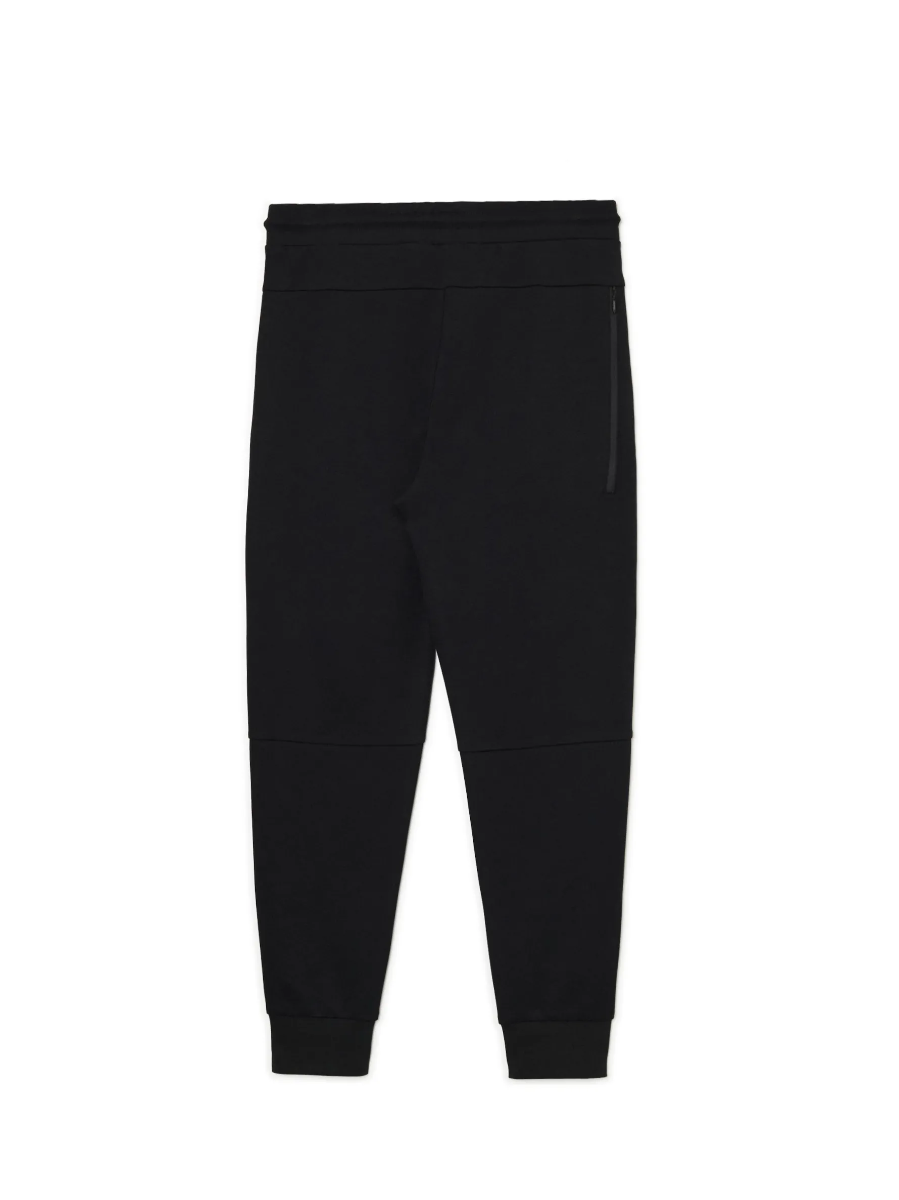 Czarne męskie spodnie typu jogger o kroju regular, uszyte z solidnej, dżersejowej dzianiny zawierającej bawełnę. Dzięki kieszeniom na zamek, Twoje rzeczy będą bezpieczne podczas różnych aktywności. dresowe spodnie typu jogger dzianinowy materiał z bawełną regularny stan gumka w pasie ze sznurkiem do regulacji długie. swobodne nogawki zakończone ściągaczem kieszenie boczne z zamkami ozdobne przeszycia