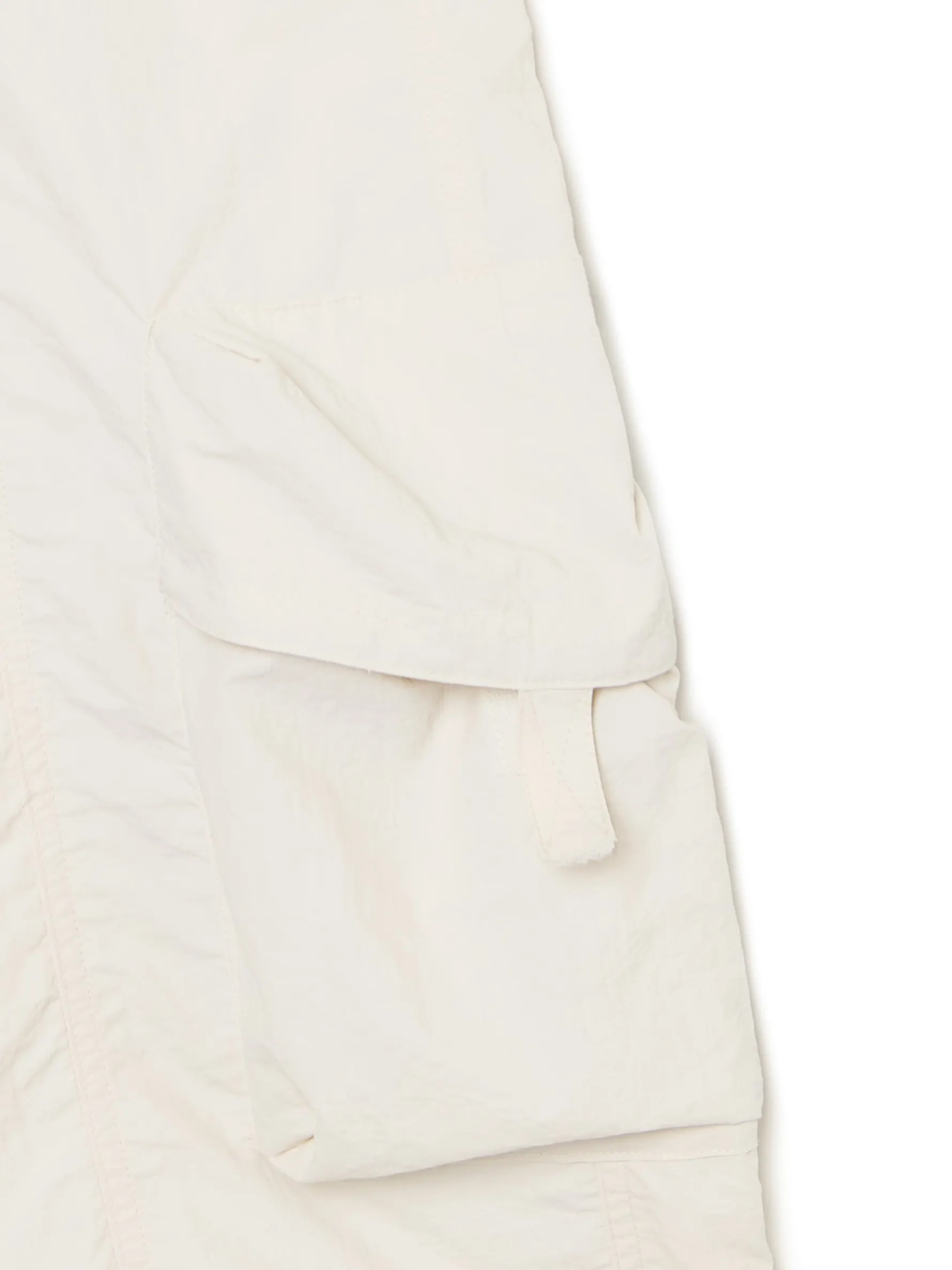 Damskie spodnie typu parachute uszyte z dzianiny w odcieniu beżu. Item wyposażony w praktyczne kieszenie cargo. wyjątkowo mocny, a jednocześnie wygodny materiał swobodny, luźny krój 3 kieszenie z patkami na nogawkach dwie naszyte kieszenie tylnie długa nogawka zakończona ściągaczem gumka w pasie ze sznurkiem do regulacji
