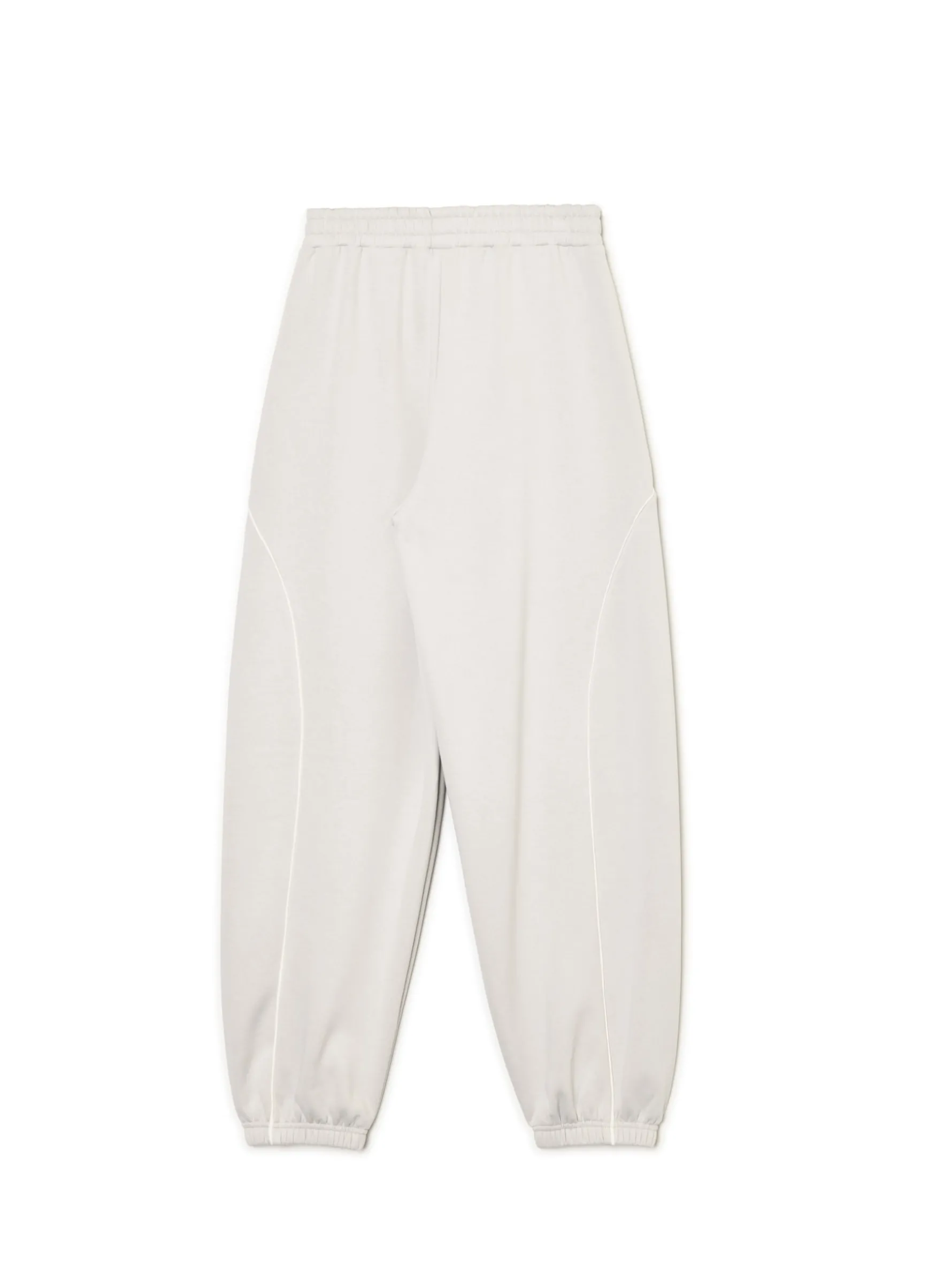 Damskie joggery o sportowym kroju, uszyte z miękkiej mieszanki dzianin o wysokiej zawartości bawełny. Elastyczna guma w pasie i ściągacze na nogawkach zapobiegają opadaniu i unoszeniu się materiału. dresowe joggery o sportowym fasonie dzianinowy materiał z bawełną lekkie ocieplenie elastyczna guma w pasie wysoki stan ozdobne naszywki