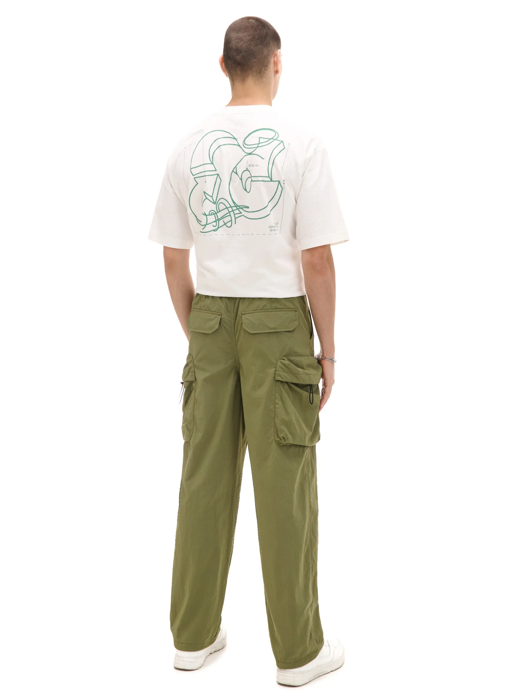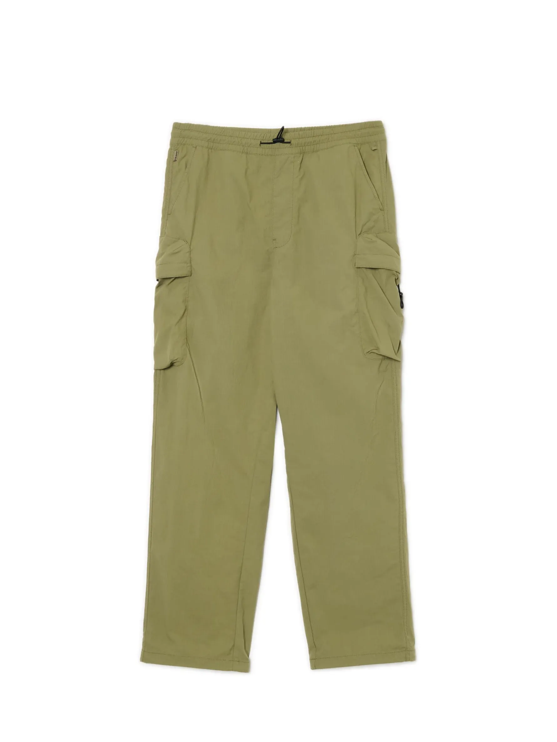 Męskie spodnie o kroju comfort uszyte z gładkiej tkaniny. Wyposażone w 6 praktycznych kieszeni – otwartych i z patkami. Regulacje za pomocą elastycznej gumy ze stoperami w pasie i przy nogawkach zapewniają dopasowanie do sylwetki. wygodny fason comfort długa, luźna nogawka zakończona gumką ze stoperem ściągacz tunelowy ze stoperami w talii dwie kieszenie z patkami i zapięciem na zatrzaski kieszenie z patkami na udach regulacja kieszeni za pomocą elastycznej gumki ze stoperem skośne kieszenie z przodu