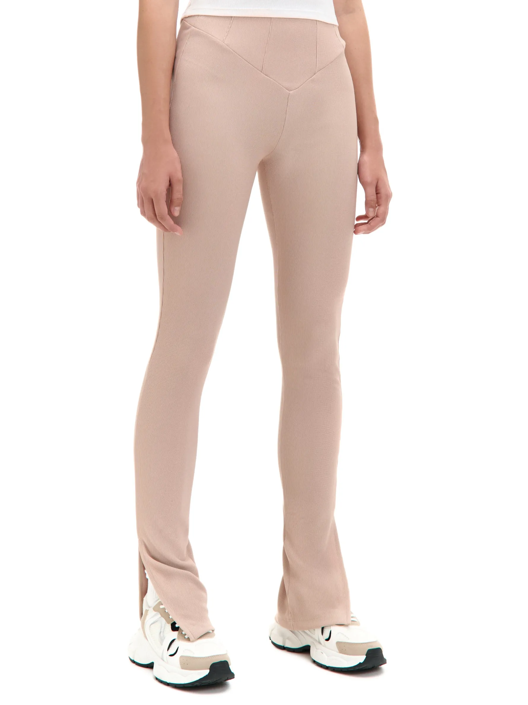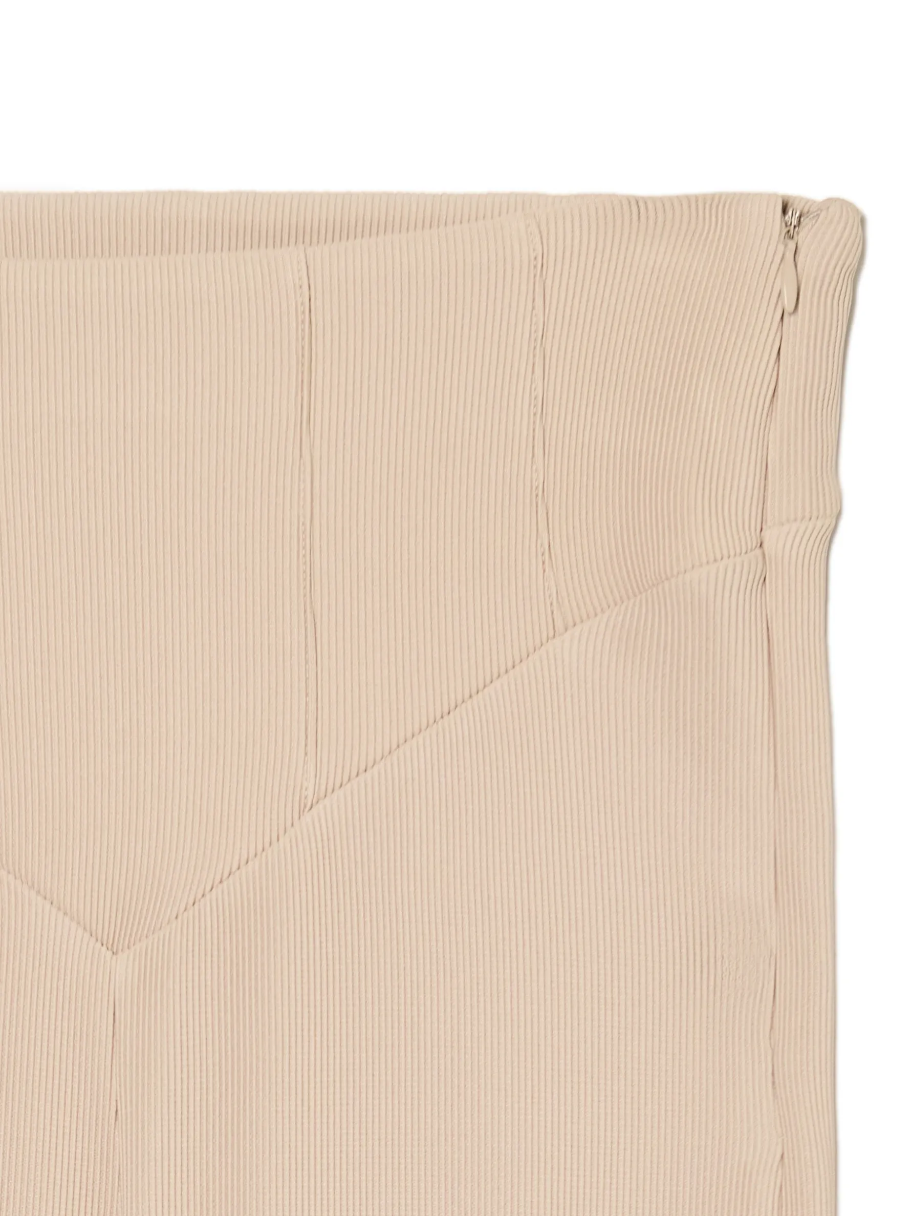 Damskie spodnie o rozszerzanych nogawkach, uszyte z prążkowanej, elastycznej mieszanki dzianin. Wysoki stan z dekoracyjnymi pionowymi przeszyciami, dopasuje się idealnie do Twojej sylwetki. spodnie typu flare z wysokim stanem dzianina z domieszką elastycznych włókien prążkowany materiał zapięcie na kryty zamek z boku ozdobne przeszycia ozdobne rozcięcia po bokach