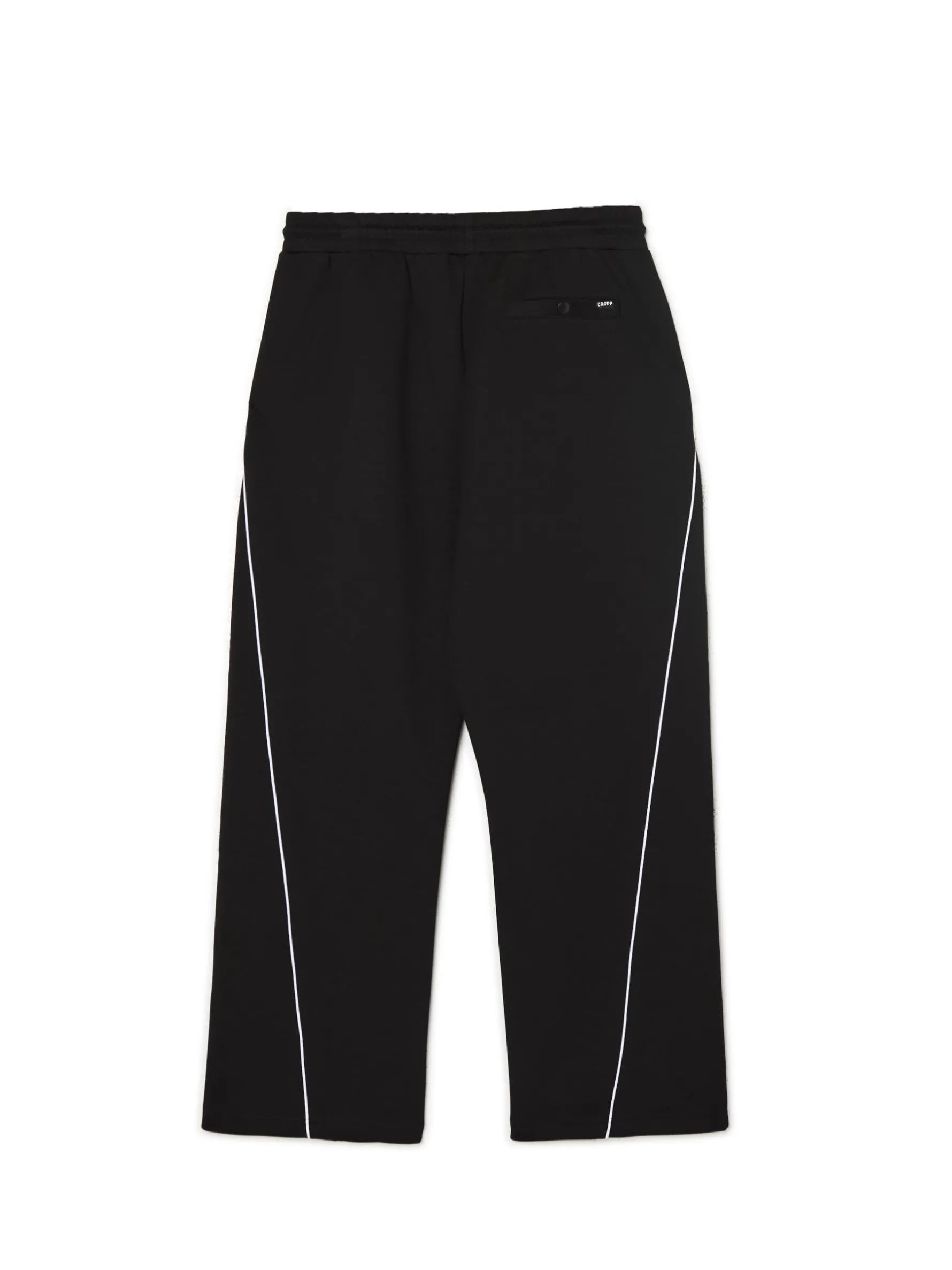 Dzianinowe męskie spodnie z szerokimi nogawkami i ozdobnymi przeszyciami. Dodatkowo z tyłu wszyta kieszeń z zapięciem na nap na kilka drobnych rzeczy. Swobodnie i komfortowo, czyli tak jak lubimy najbardziej. spodnie typu wide leg dzianina z domieszką elastycznych włókien elastyczna gumka w pasie troczki w pasie długie, szerokie nogawki naszywa kieszeń z tyłu na zatrzask ozdobne wykończenie w kontrastującym kolorze