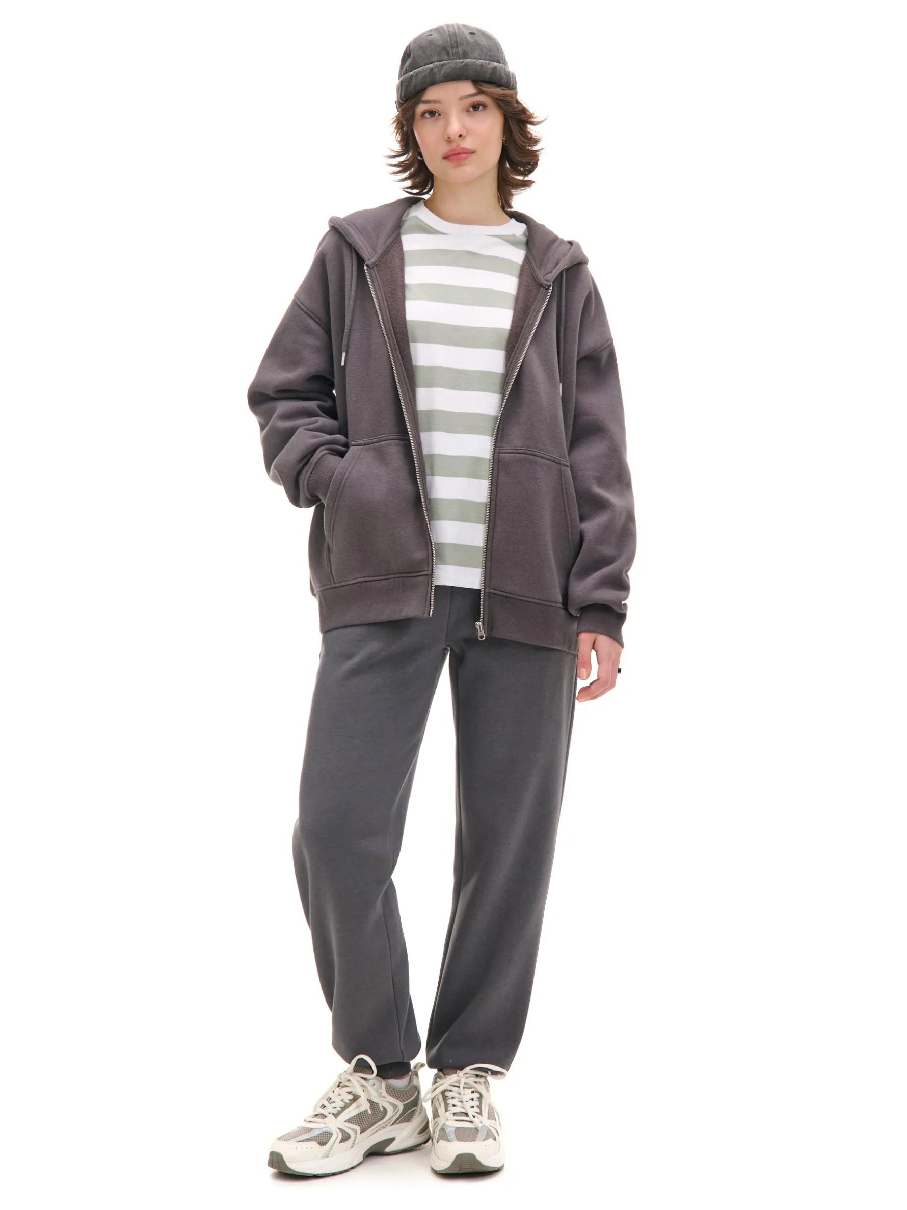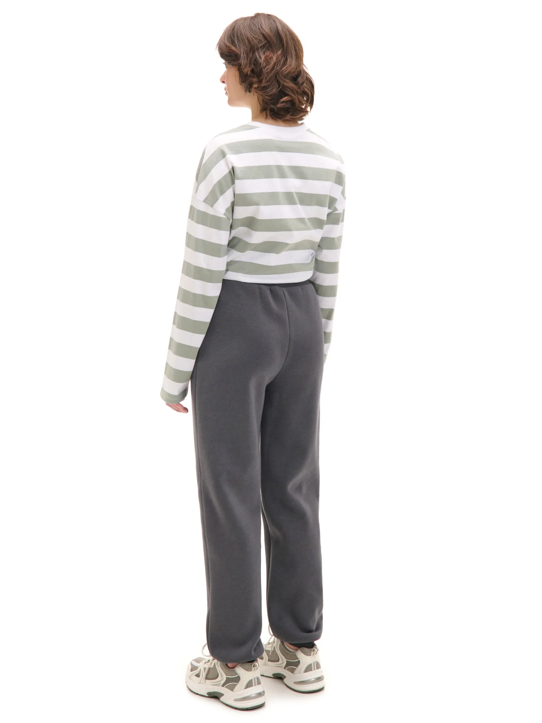Damskie spodnie dresowe uszyte z gładkiej mieszanki dzianin. Ściągacze w pasie i przy nogawkach zapewniają dopasowanie i nie krępują ruchów podczas codziennych aktywności. spodnie typu jogger uszyte z miękkiej dzianiny z bawełną regularny stan elastyczna gumka w pasie długie nogawki wykończone ściągaczem otwarte kieszenie po bokach brzegi zakończone prążowanym materiałem niewielki haft z przodu