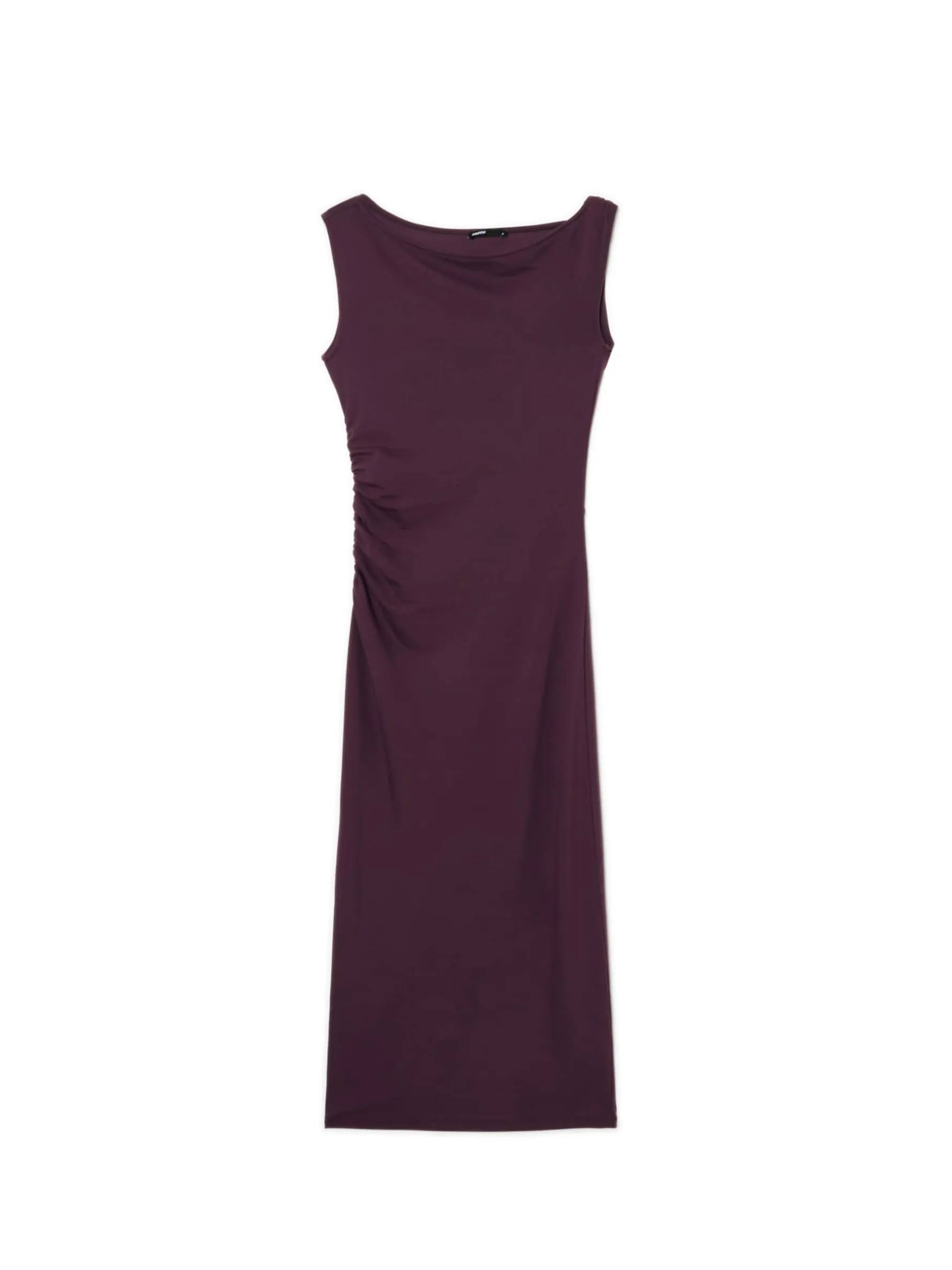 Cropp Sukienki, Kombinezony*Burgundowa sukienka maxi z marszczeniem fioletowy