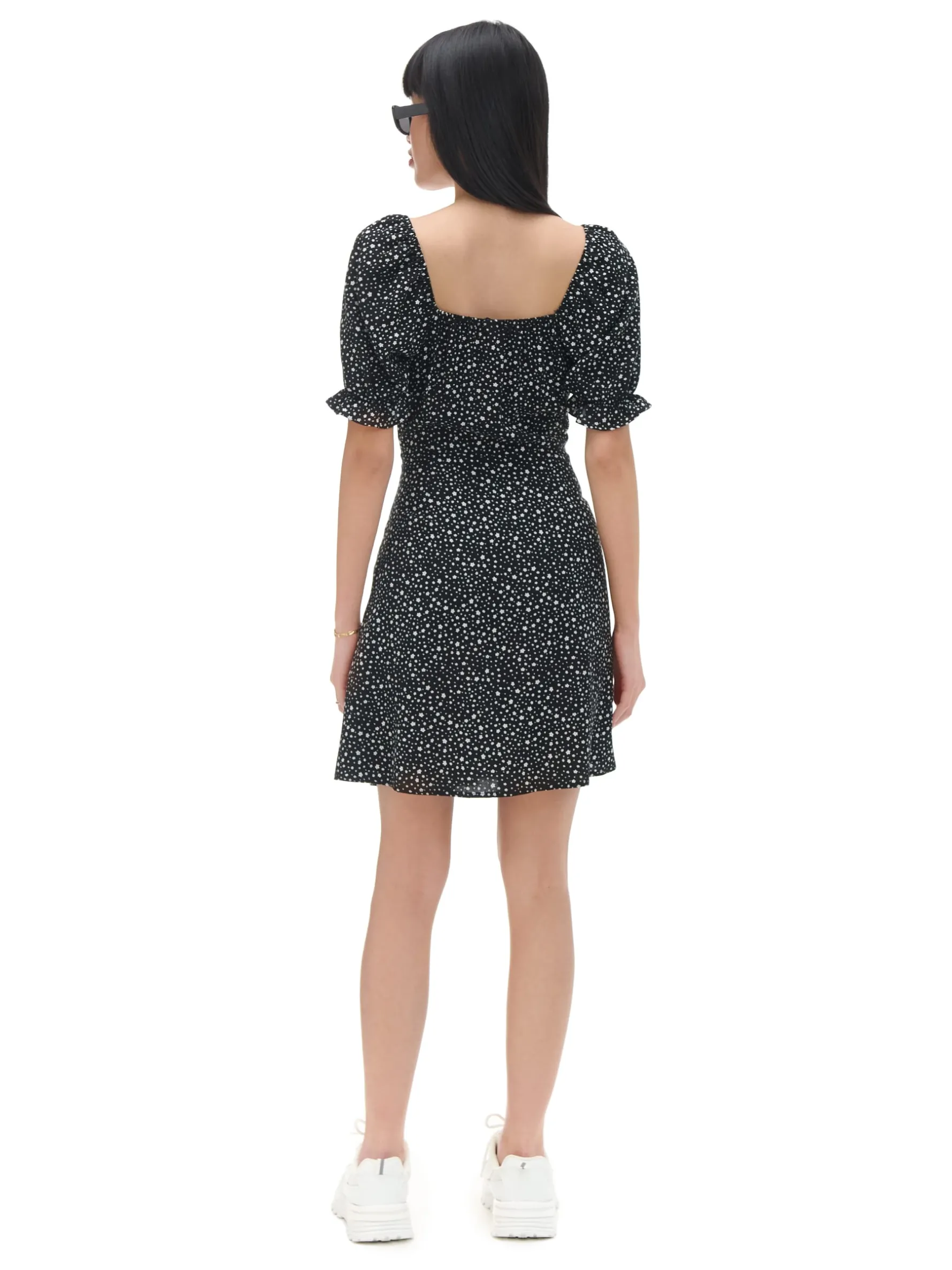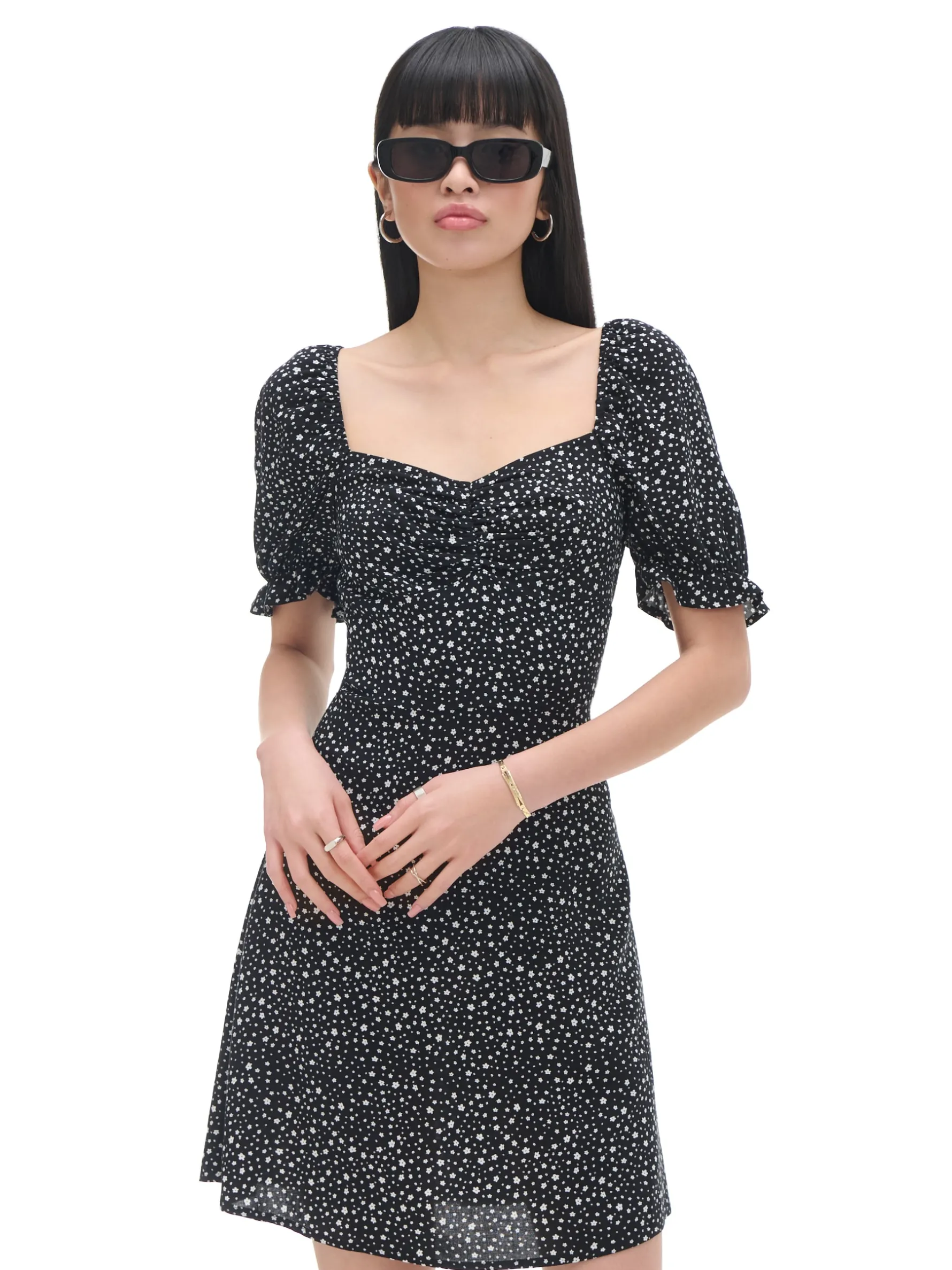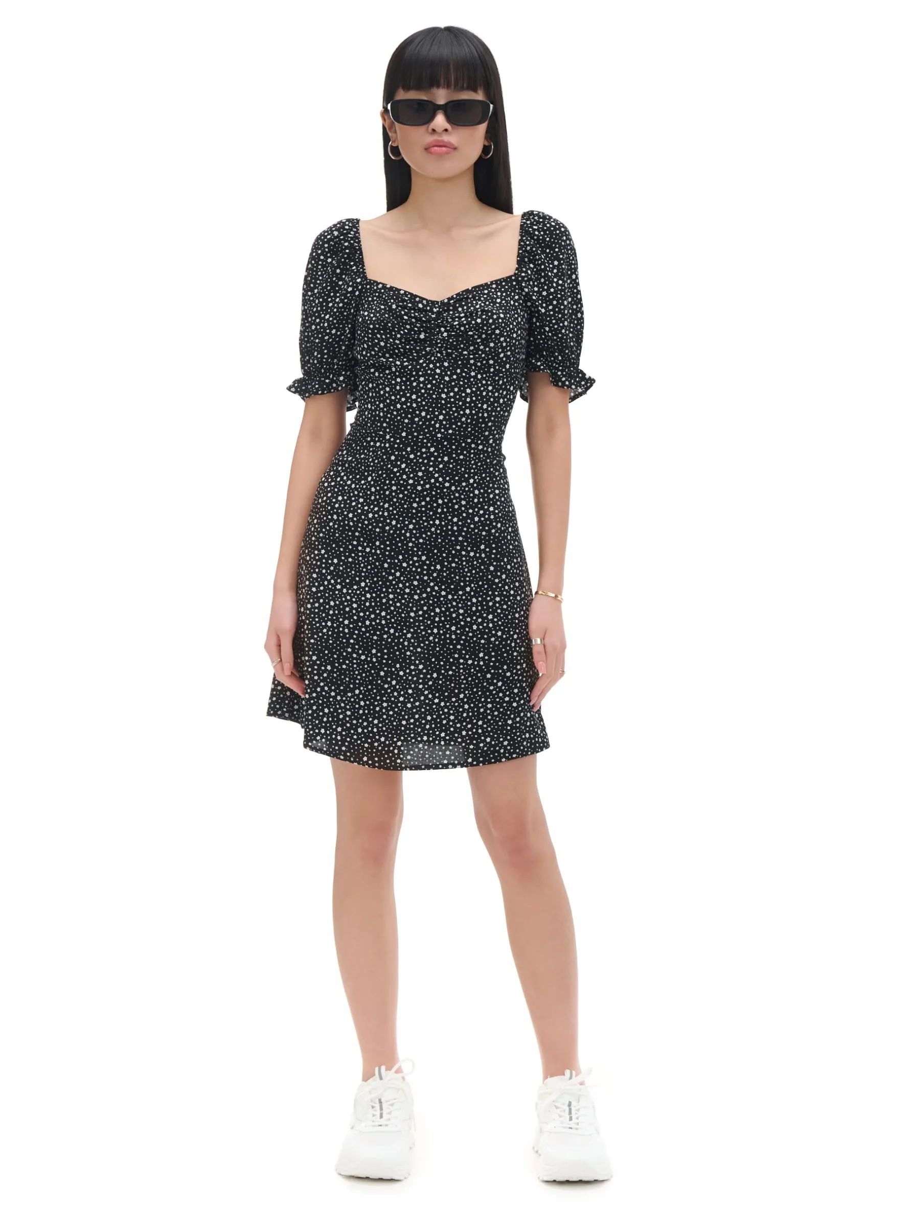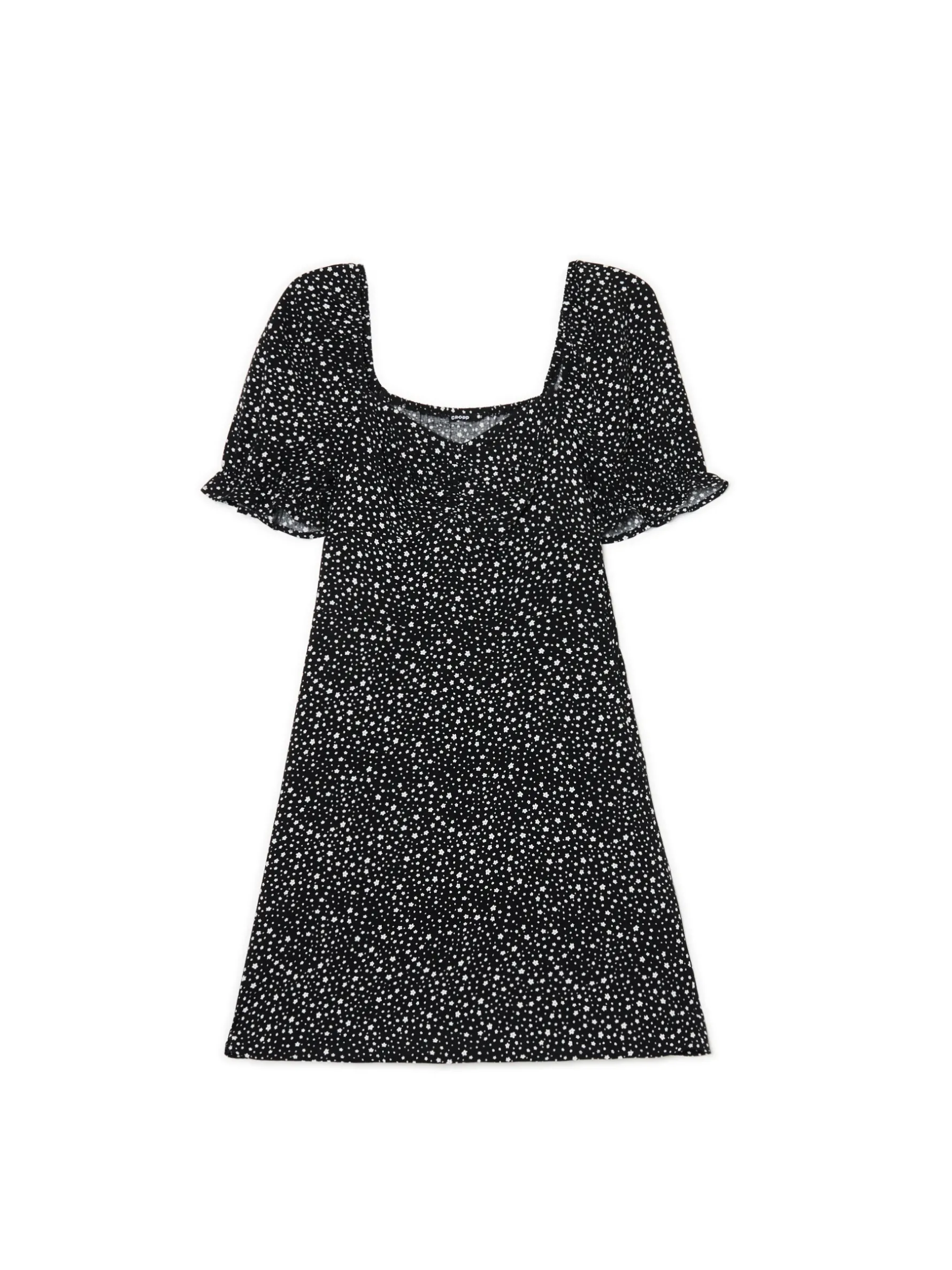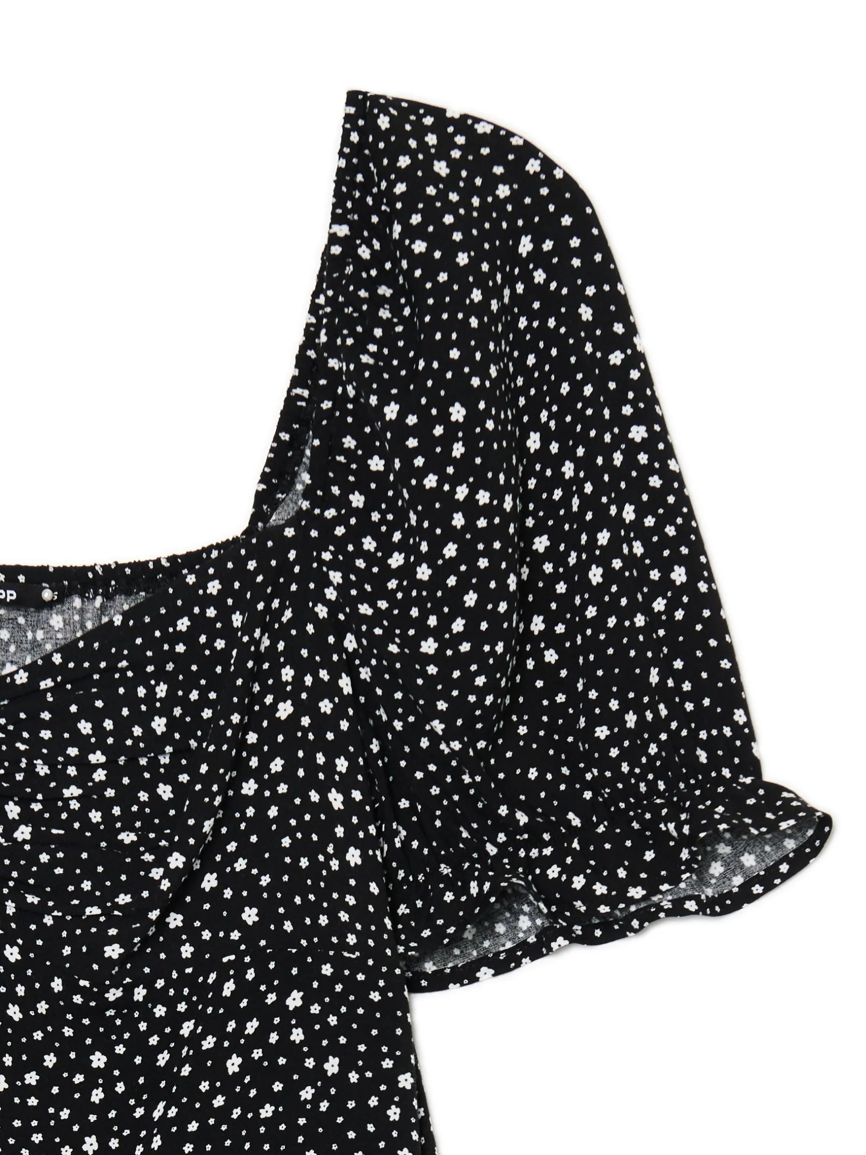 Cropp Sukienki, Kombinezony*Czarna sukienka mini z motywem kwiatowym czarny