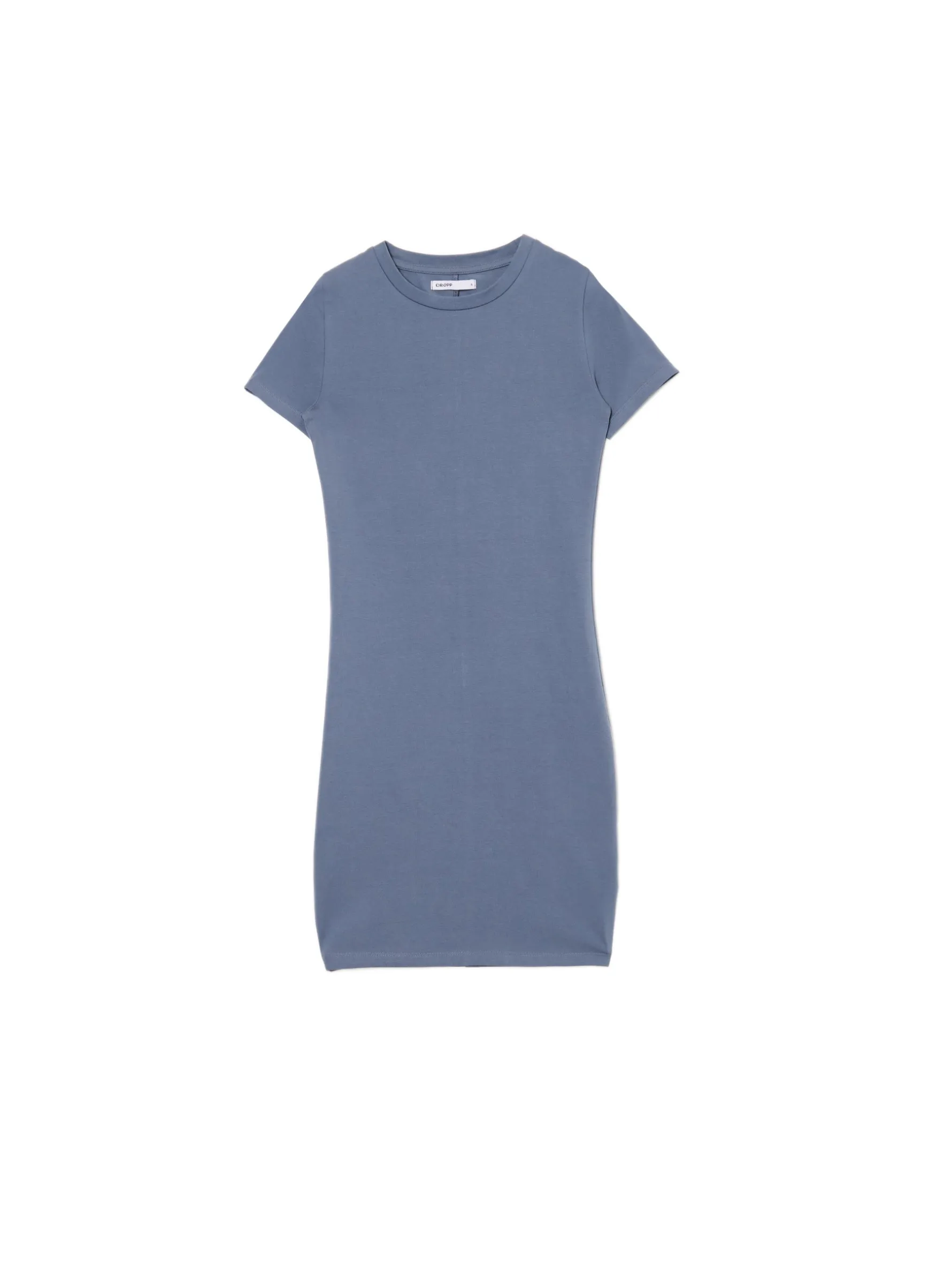 Damska sukienka z krótkim rękawem, uszyta z bawełny z dodatkiem elastycznych włókien. Model, który warto mięc awaryjnie w szafie. bawełna z dodatkiem elastycznych włókien dopasowany krój podkreślający sylwetkę krótkie, ścięte rękawy półokrągły dekolt z lamówką ozdobne przeszycie