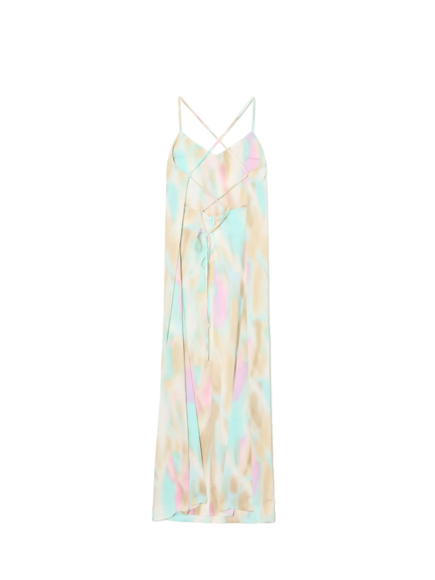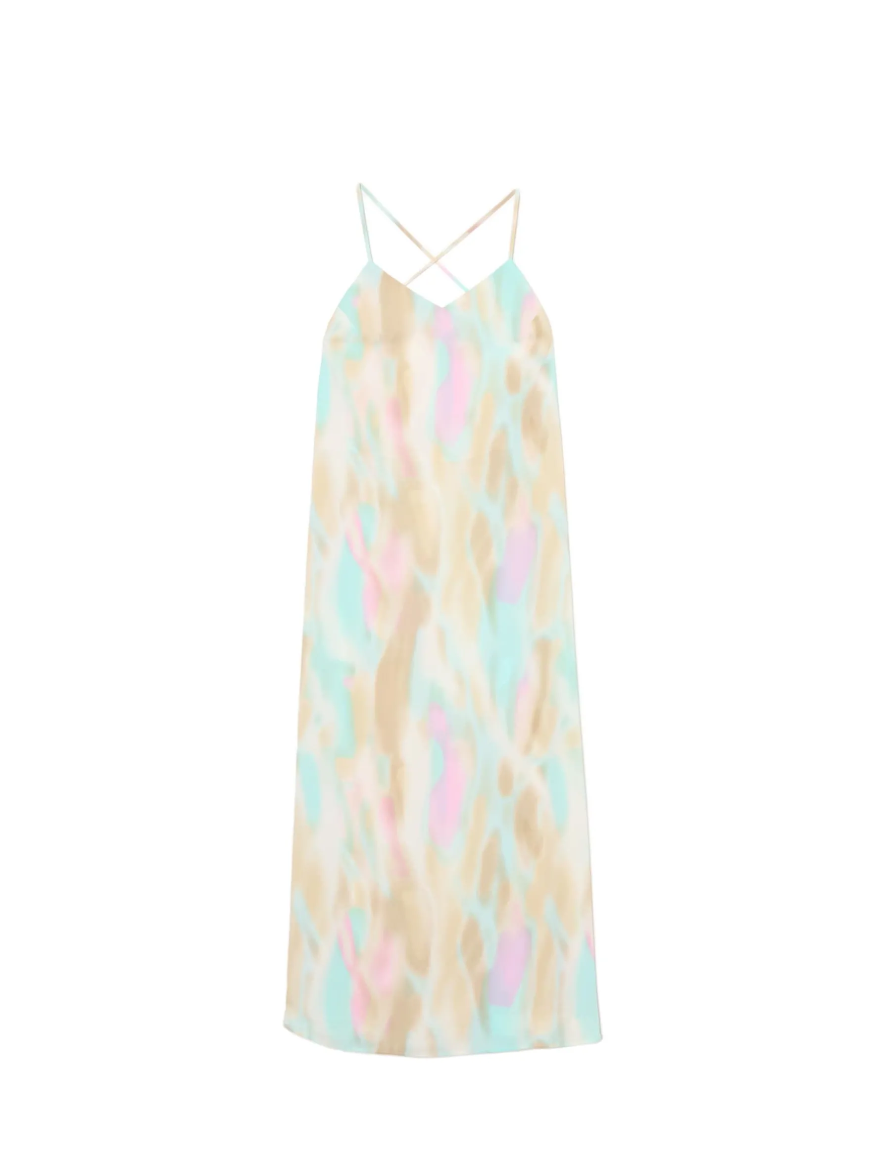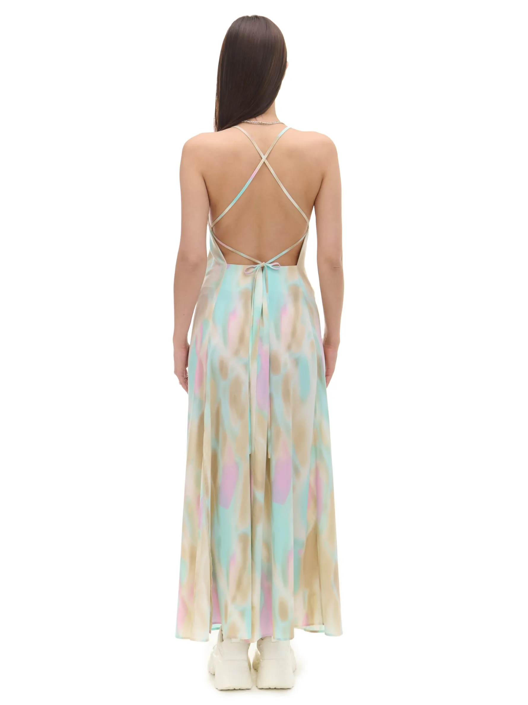 Luźna sukienka na ramiączkach w rozmiarze maxi zawiązywana na plecach to must have letnich wypadów! wykonana z łączonych materiałów luźny fason elastyczna talia z wiązaniem dekolt w serek cienkie, krzyżujące się na plecach ramiączka dekoracyjne wycięcie z przodu