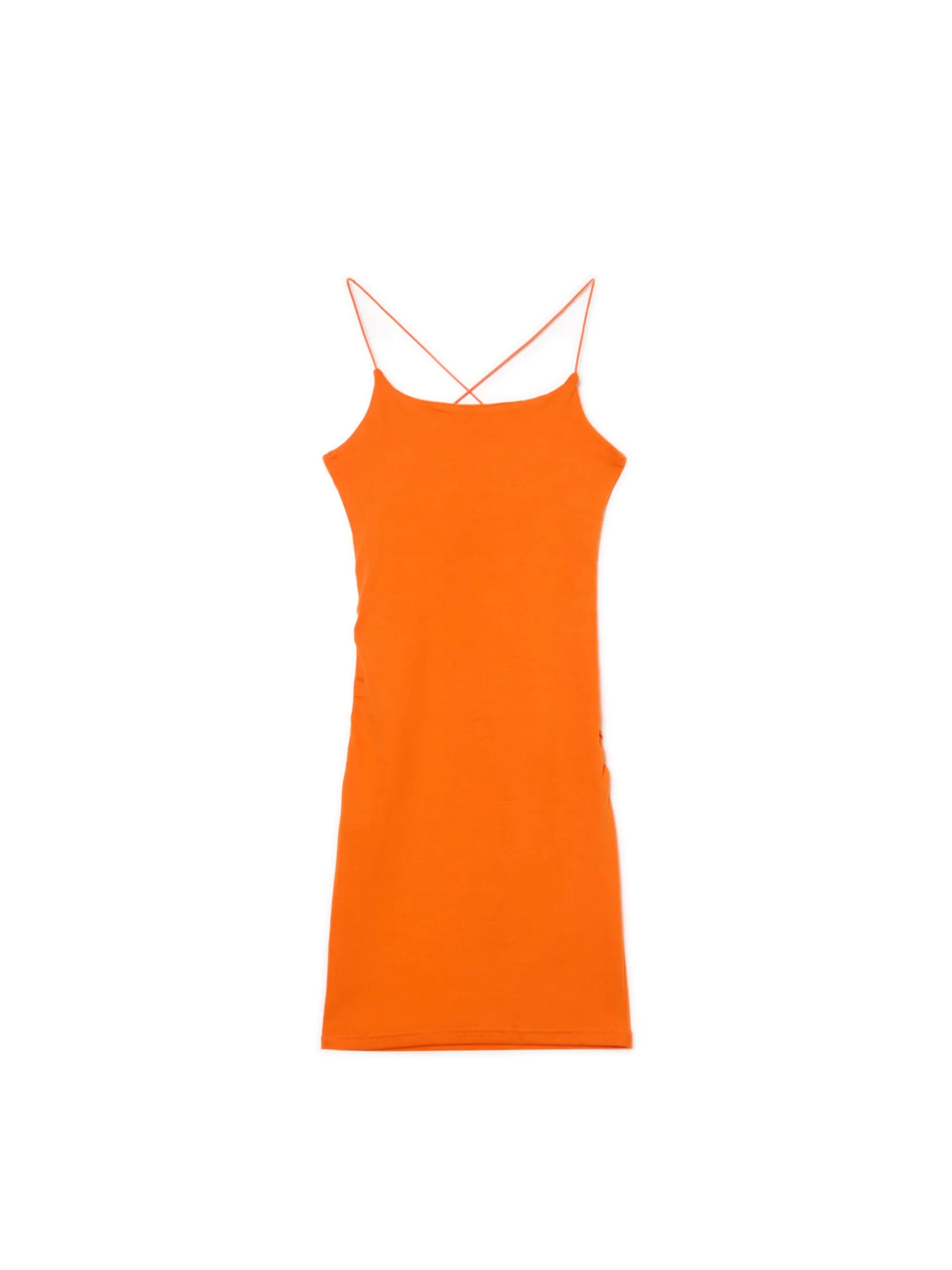 Sukienka o długości mini, uszyta z dzianiny z dodatkiem elastycznych włókien. Pastelowy kolor to hit lata! bawełna z dodatkiem elastycznych włókien długość mini i dopasowany krój cienkie, krzyżujące się na plecach ramiączka lekkie marszczenia po bokach dla idealnego dopasowania materiału wokół brzucha