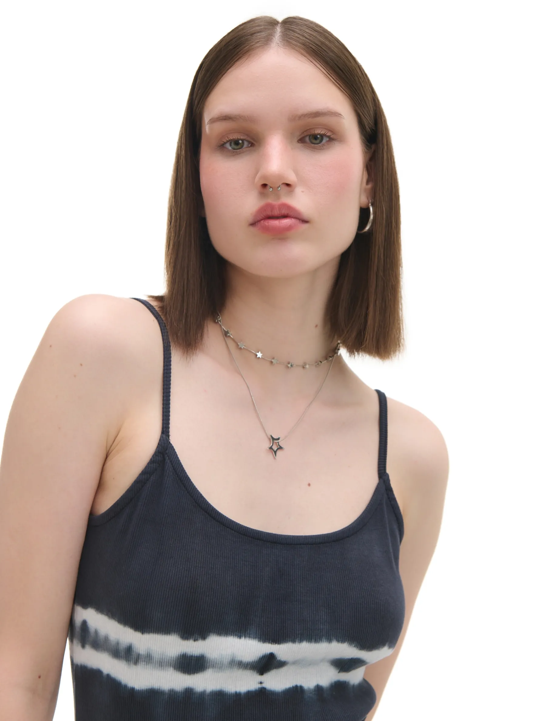 Sukienka uszyta z bawełnianej dzianiny z dodatkiem elastycznych włókien. Nadruk z efektem tie-dye, głęboki dekolt na plecach i praktyczne wycięcia na nogi to tylko nieliczne z zalet tego itema! długość maxi i dopasowany krój cienkie ramiączka dekolt na plecach rozcięcia po bokach efekt tie-dye w paski na całości Wzrost modelki: 172 cm