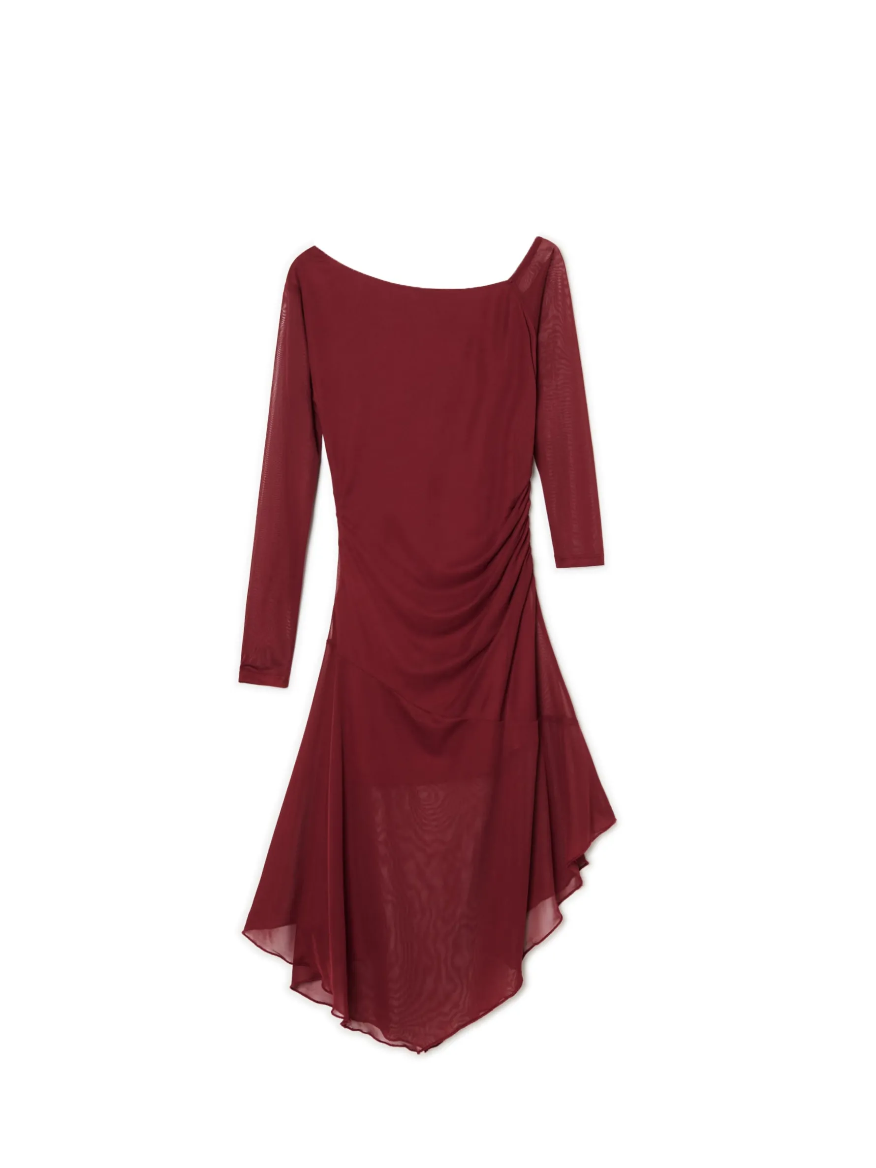 Sukienka damska o długości midi i wyróżniającą się krótszą podszewką. Uszyta z dzianiny z prześwitującej siateczki mesh o drobnych oczkach. Intensywny kolor i efektowne wykończenie zrobią wrażenie na niejednej osobie. uszyta z dzianiny typu mesh długość midi wewnątrz gładka podszewka zapięcie na kryty zamek z boku efektowne, odkryte ramię długie, dopasowane rękawy rozszerzany dół z dekoracyjnymi cięciami lekkie marszczenia po bokach dla idealnego dopasowania materiału wokół brzucha