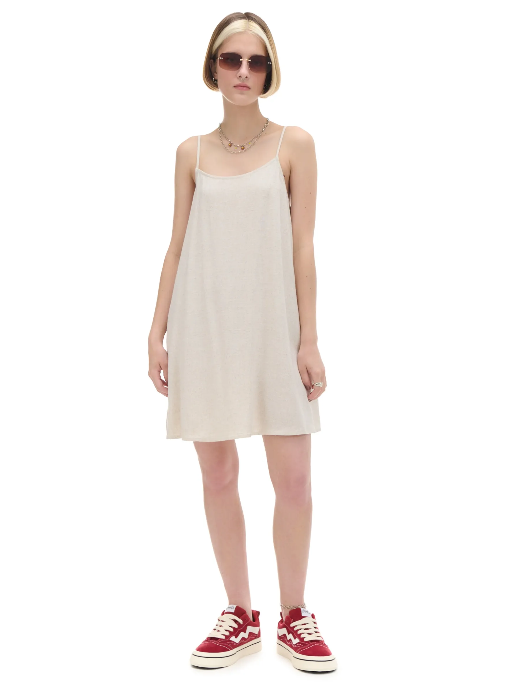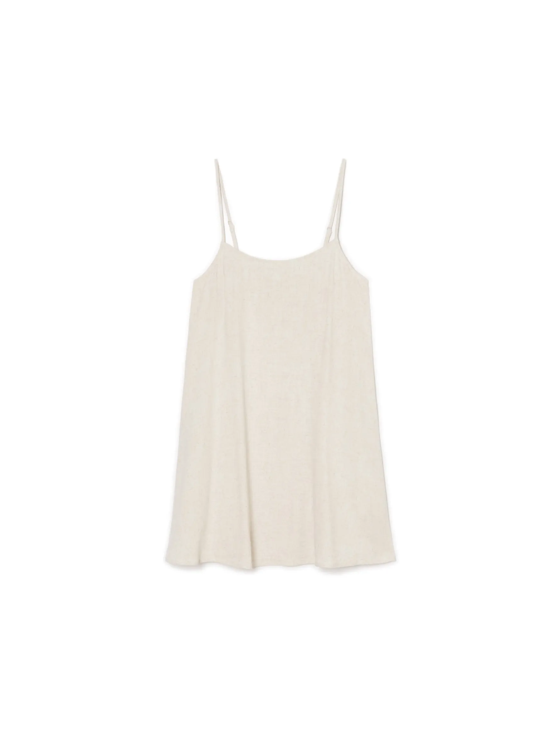 Luźna sukienka na ramiączkach o długości mini uszyta z mieszanki wiskozy i lnu. Idealna w letnie dni! lekki materiał z wiskozą swobodny, luźny krój długość mini wąskie ramiączka z regulacją długości