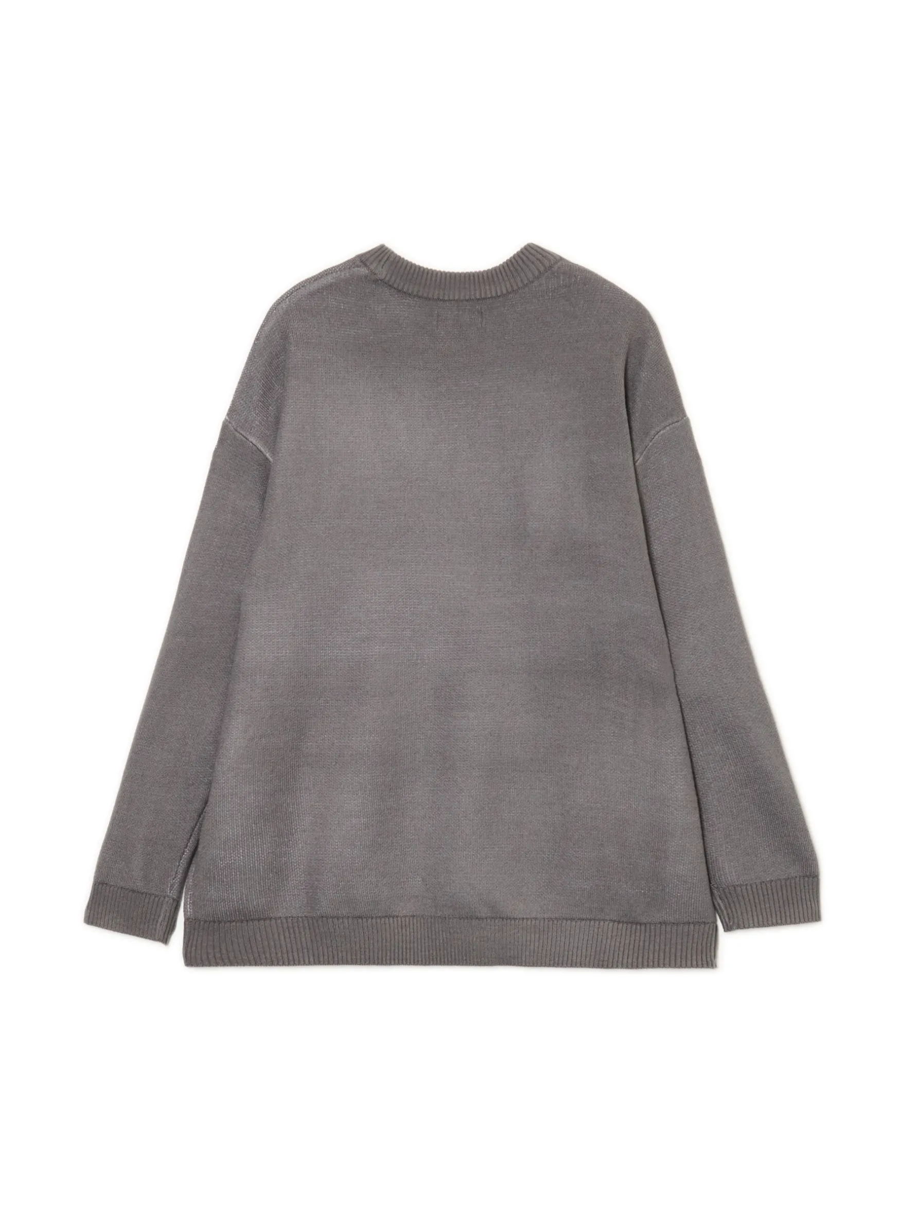 Damski sweter o kroju oversize uszyty z dzianiny w szarym kolorze. Na przodzie artystyczny nadruk z motywem twarzy. Ten item jest przyjemny w dotyku, więc otuli Cię w chłodne wieczory! uszyty z dzianiny o drobnym splocie krój oversize okrągły dekolt z lamówką dół i rękawy wykończone prążkowanym ściągaczem delikatny efekt sprania oryginalny print