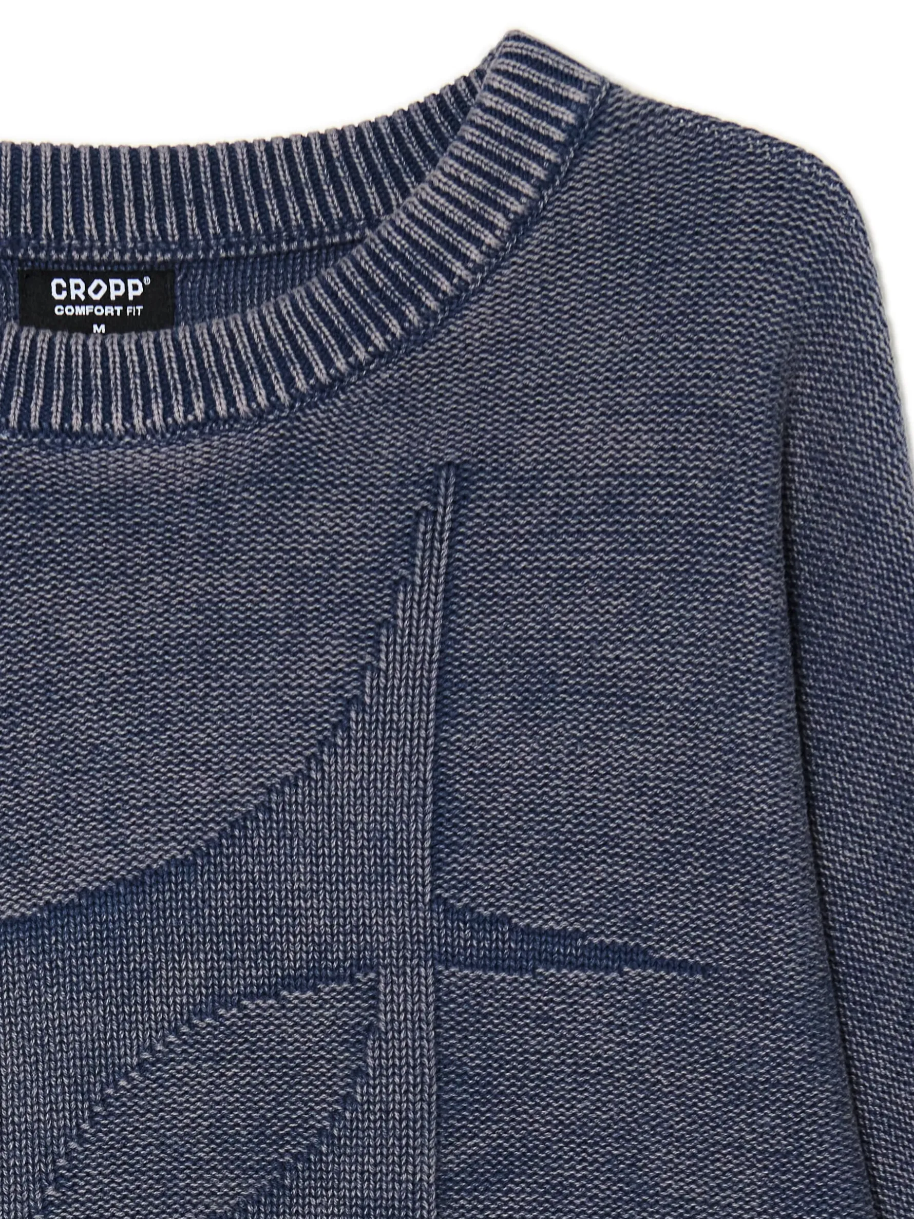 Sweter jak bluza? Czemu nie! Mamy dla Ciebie wygodny męski sweter wkładany przez głowę, uszyty z żakardowej, bawełnianej dzianiny. Na całości efekt sprania, a na przodzie strukturalny nadruk. Zmatchuj ten item z ulubionymi spodniami! 100% bawełny wygodny krój comfort okragły dekolt ze ściągaczem długie rękawy z obniżoną linią ramion silikonowa taśma wewnątrz rękawów utrzymująca materiał na ramionach dół i rękawy wykończone prążkowanym ściągaczem naszywka Cropp