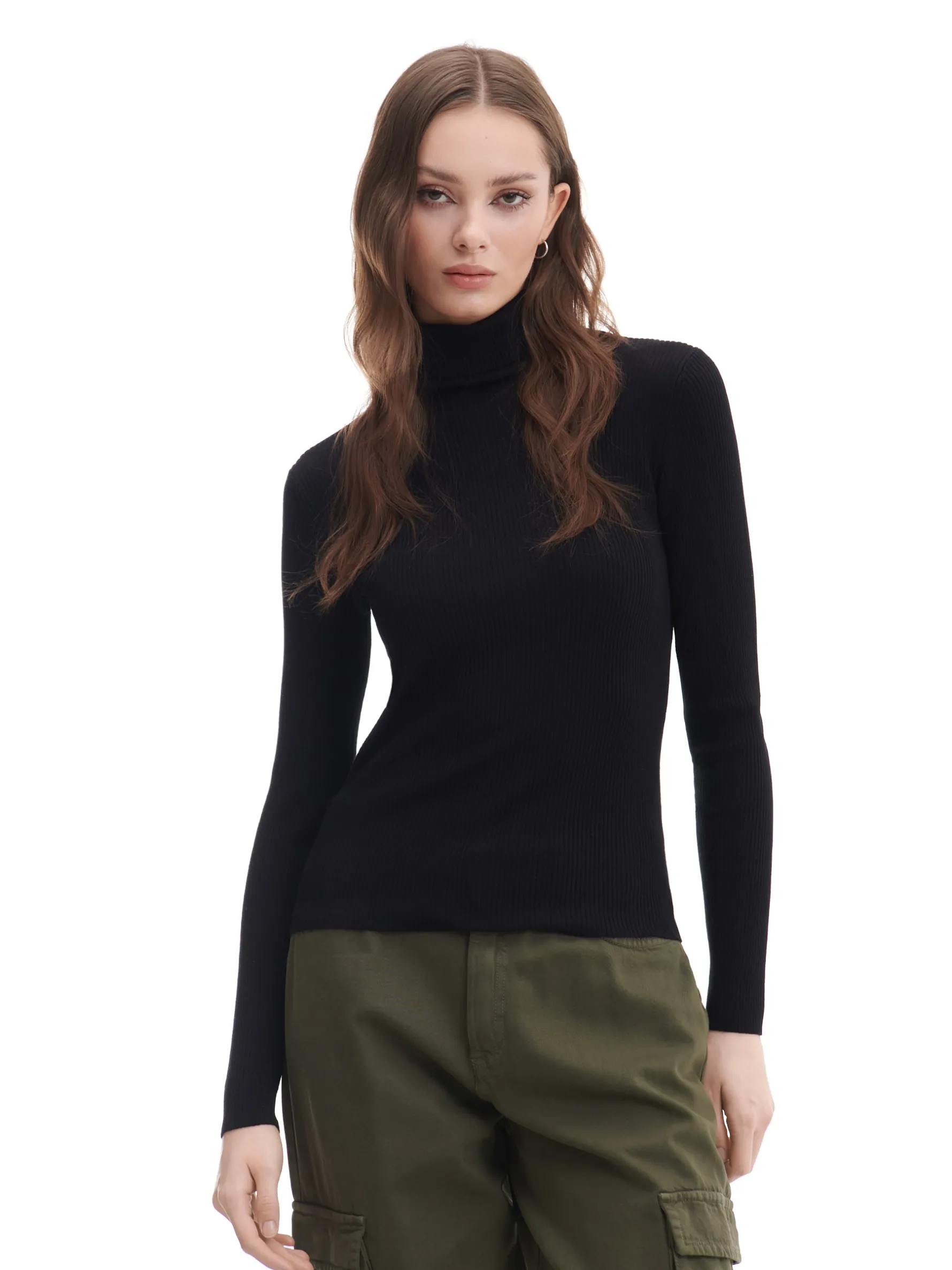 Damski sweter z półgolfem, uszyty z dzianiny o wysokiej zawartości bawełny. regularny krój prążkowana struktura półgolf pod szyją dostępne inne warianty kolorystyczne