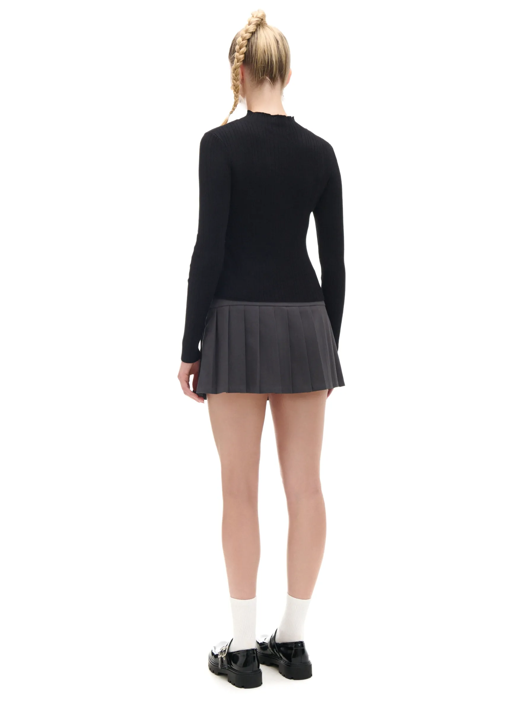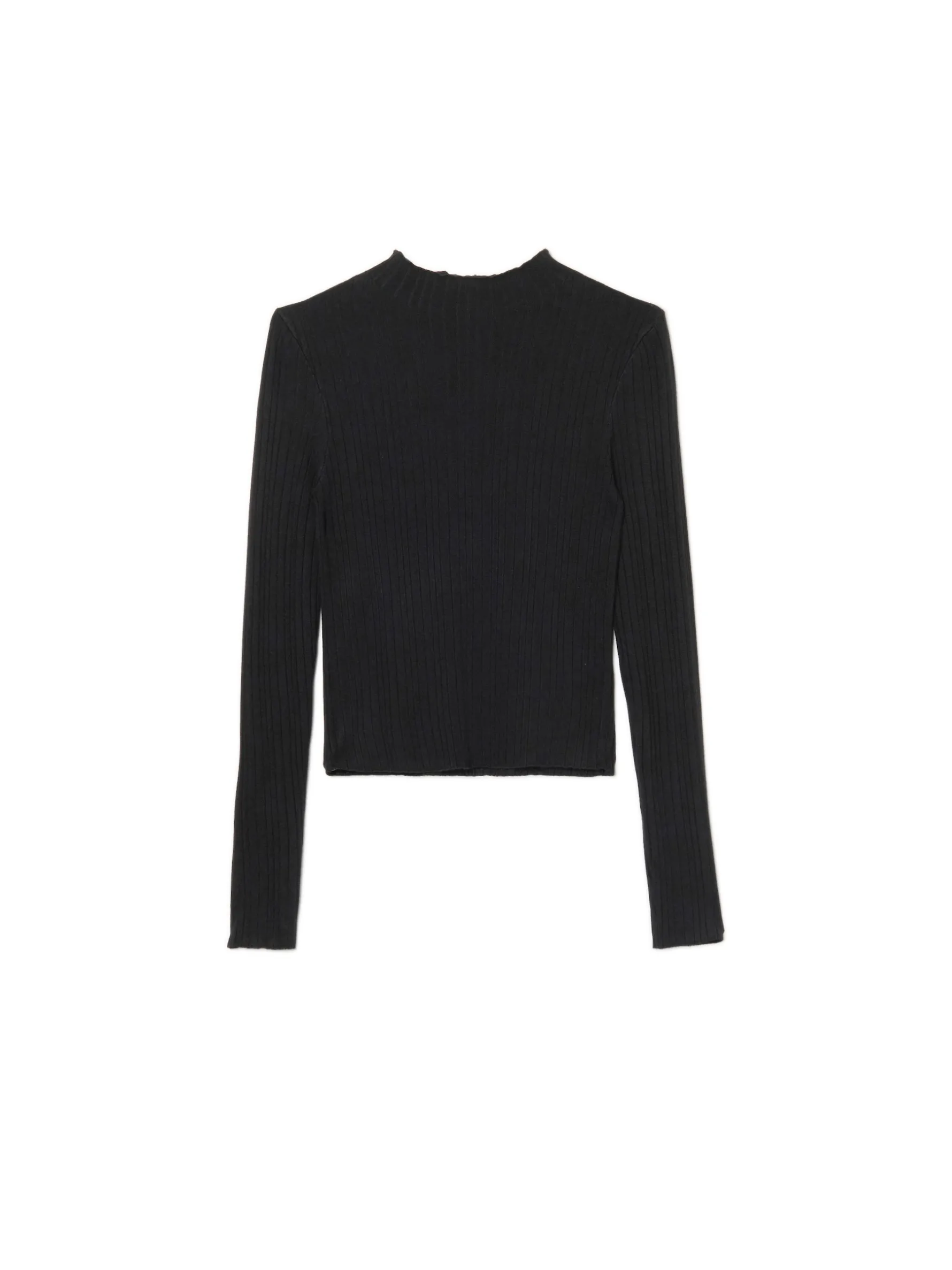 Sweter damski uszyty z mieszanki dzianin z wiskozą. Okryje Cię w chłodne wieczory! uszyty z prążkowanej dzianiny o wysokiej zawartości wiskozy dopasowany krój podkreślający sylwetkę zabudowany dekolt z półgolfem długie, dopasowane rękawy