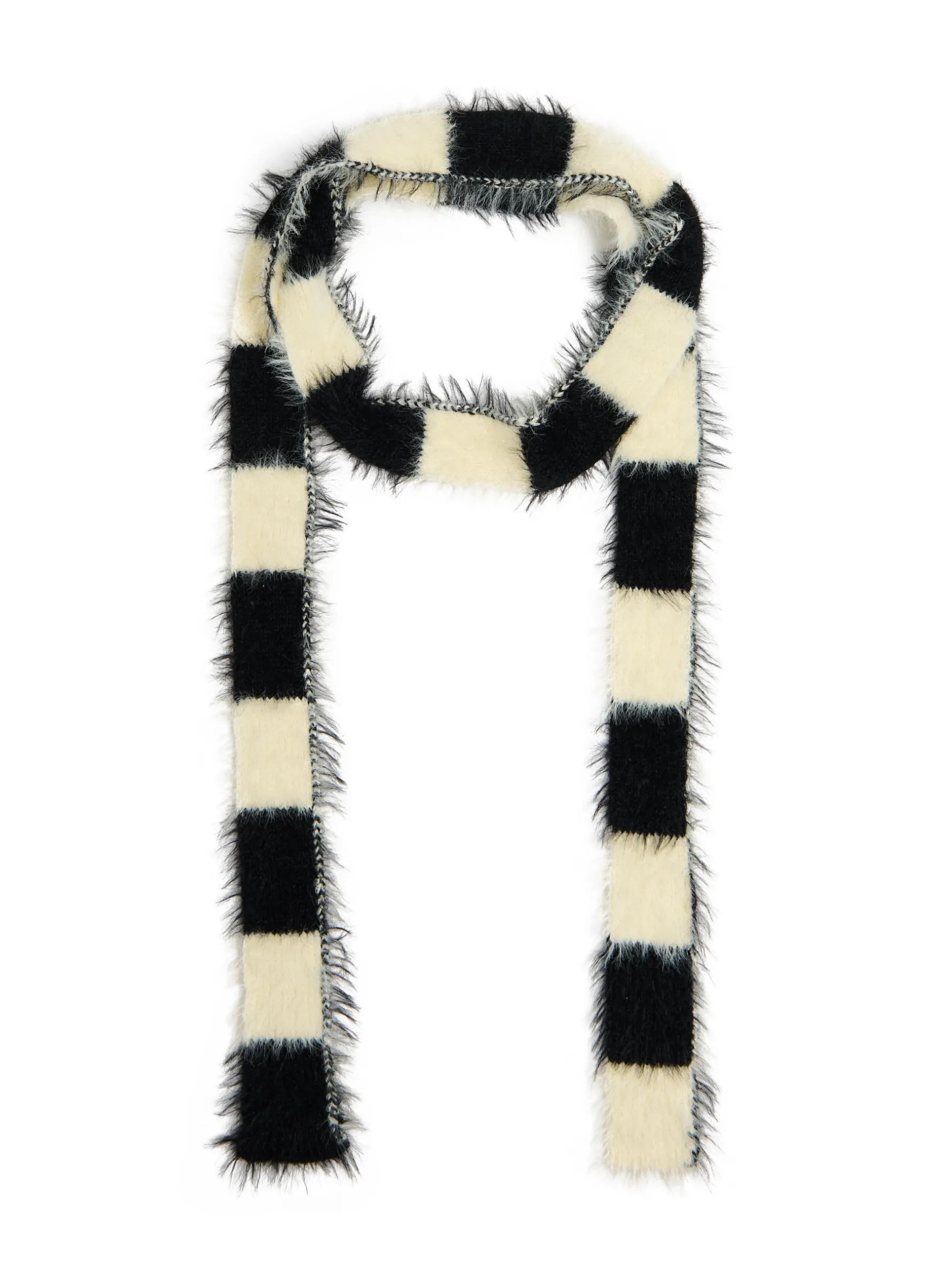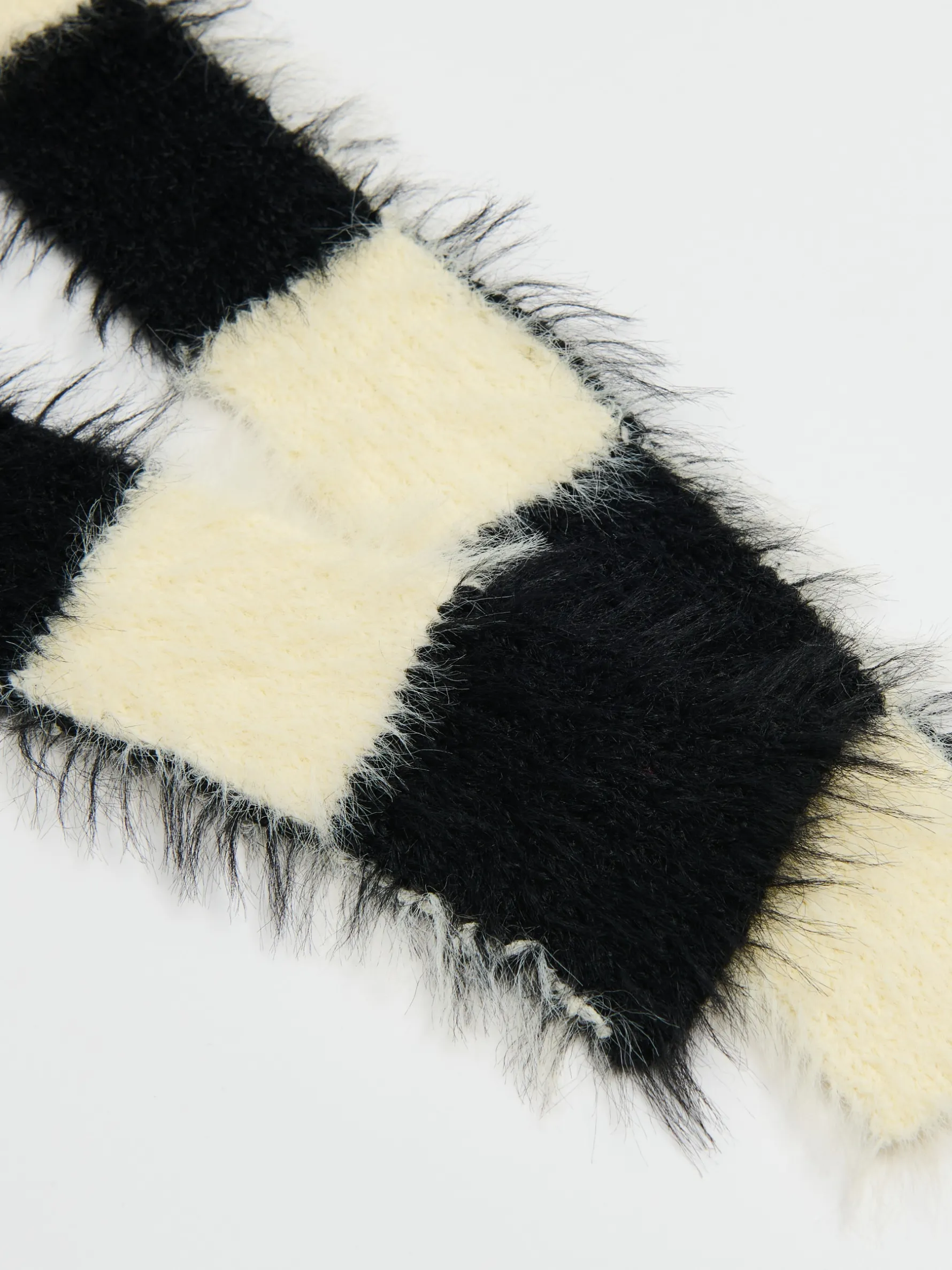 Damski szalik uszyty z przyjemnej w dotyku dzianiny w biało-czarnym kolorze z delikatnym meszkiem na całości. Ciekawy dodatek nie tylko do kurtek i płaszczy. Just try!