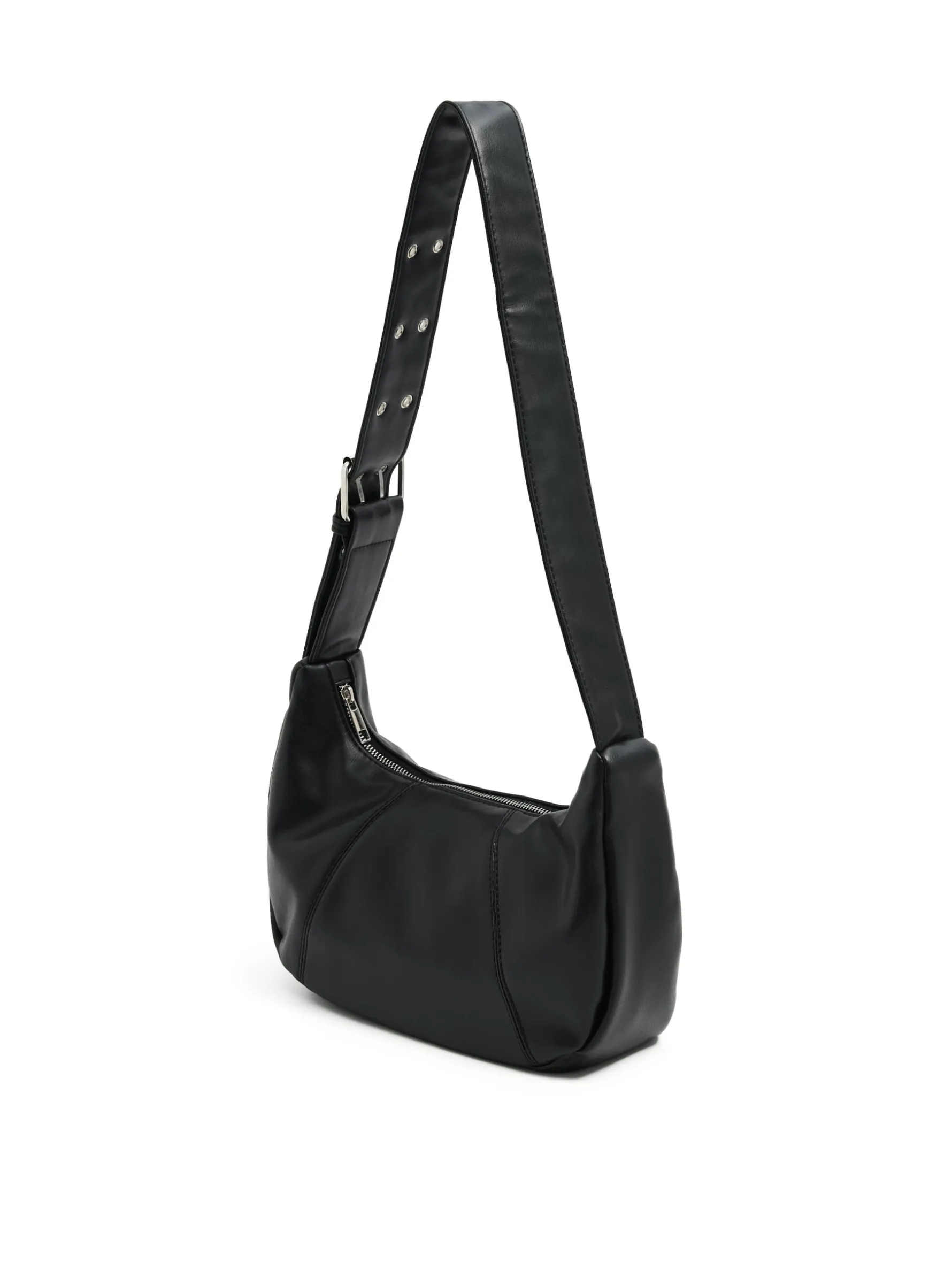 Czarna damska torebka na ramię, wykonana z imitacji skóry. Idealne uzupełnienie luźnej stylówki! regulowny pasek na ramię zapięcie na suwak wewnętrzna kieszonka zapinana na suwak