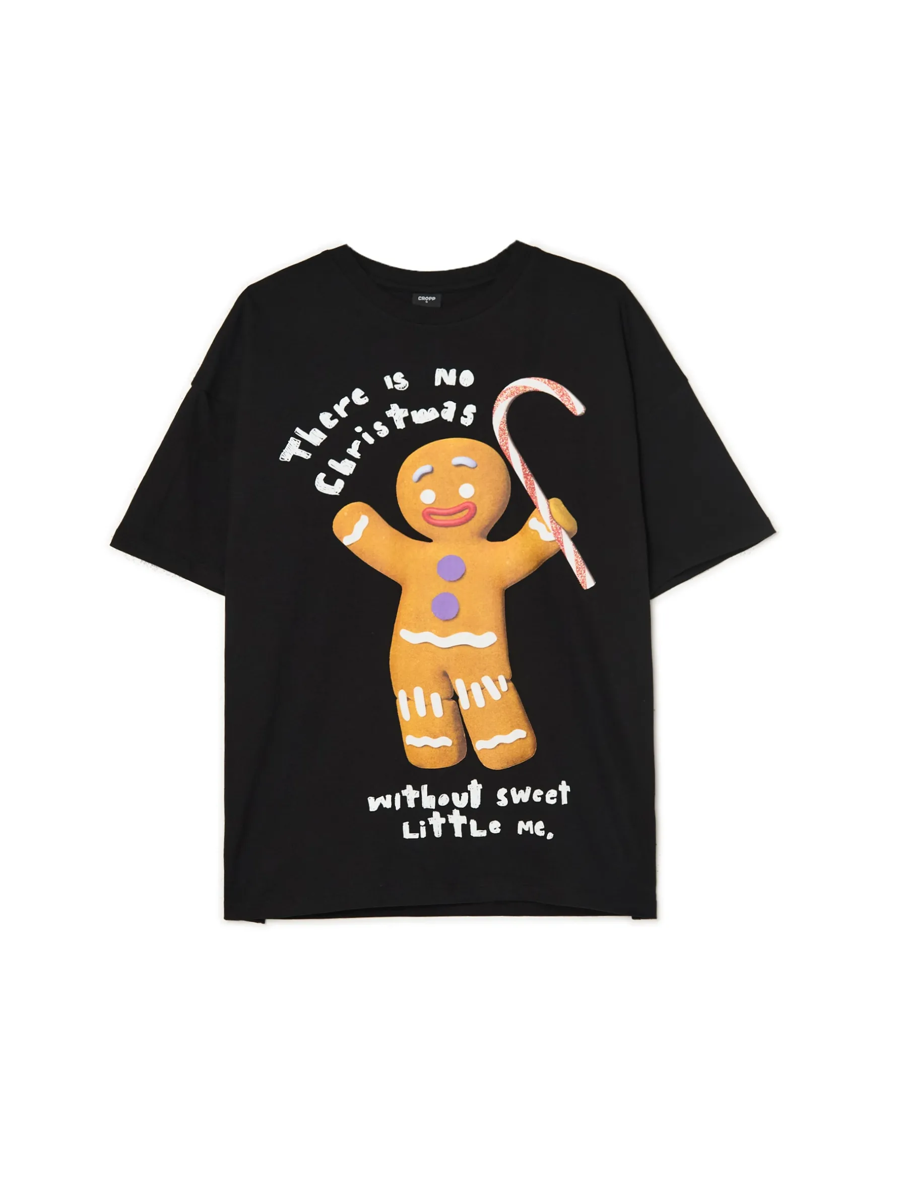 Cropp Ubrania Świąteczne|Koszulki, Topy*Świąteczny T-shirt z Ciastkiem czarny