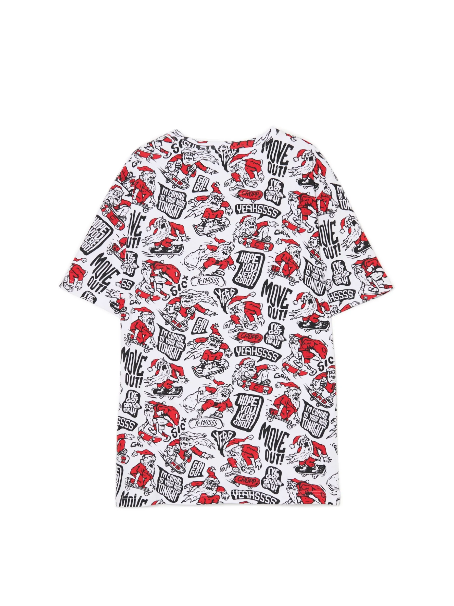 Croppowy Święty Mikołaj jeździ regularnie na deskorolce i robi sztosowe triki. Masz to uwiecznione na tej bawełnianej, męskiej koszulce z krótkim rękawem o fasonie regular. True story! 100% bawełny regularny krój okrągły dekolt krótkie, swobodne rękawy nadruk z motywem Xmas