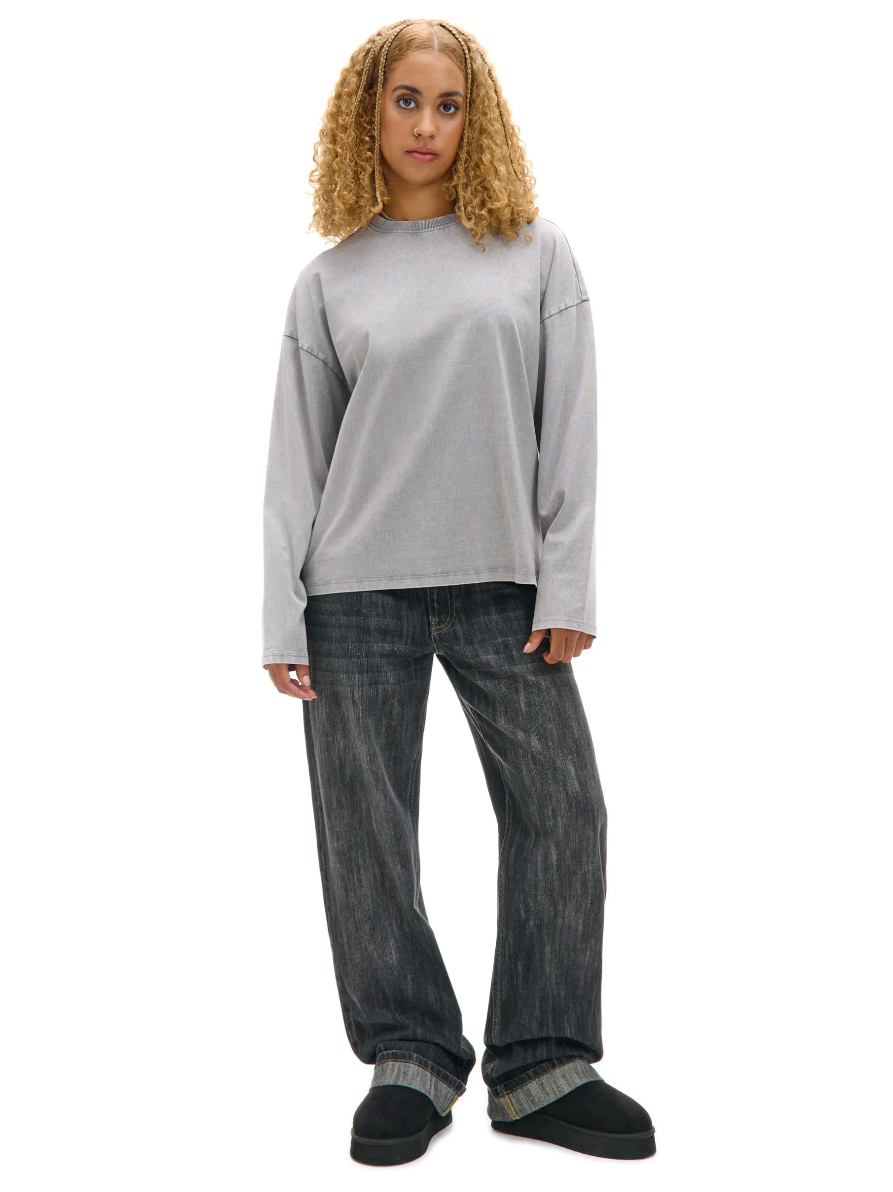 Damska koszulka z długim rękawem, uszyta z bawełnianej dzianiny w kolorze jasnoszarym. Swobodny, luźny krój i stonowane kolory sprawiają, że to casual na każdą okazję! 100% bawełny krój oversize okrągły dekolt z lamówką długie rękawy z obniżoną linią ramion Ten produkt należy do kolekcji UNISEX – zalecamy wybranie mniejszego rozmiaru niż zazwyczaj, jeśli chcesz uniknąć efektu oversize.