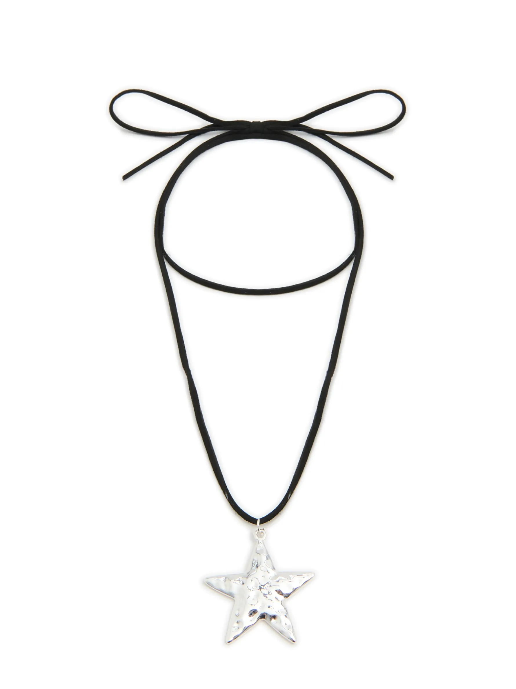 Dodatek do stylizacji dla miłośniczek astralnych symboli. Damski naszyjnik złożony z rzemykowego łańcuszka zawiązywanego na szyi. Zestaw uzupełniono o zawieszkę z motywem gwiazdy.