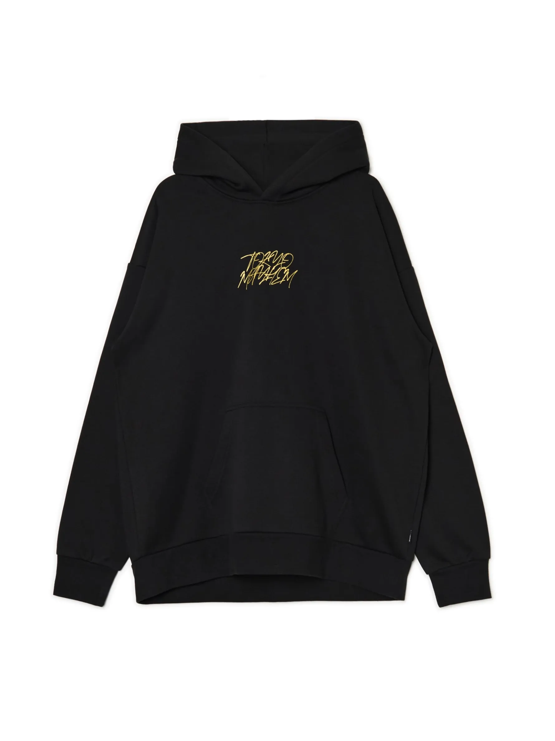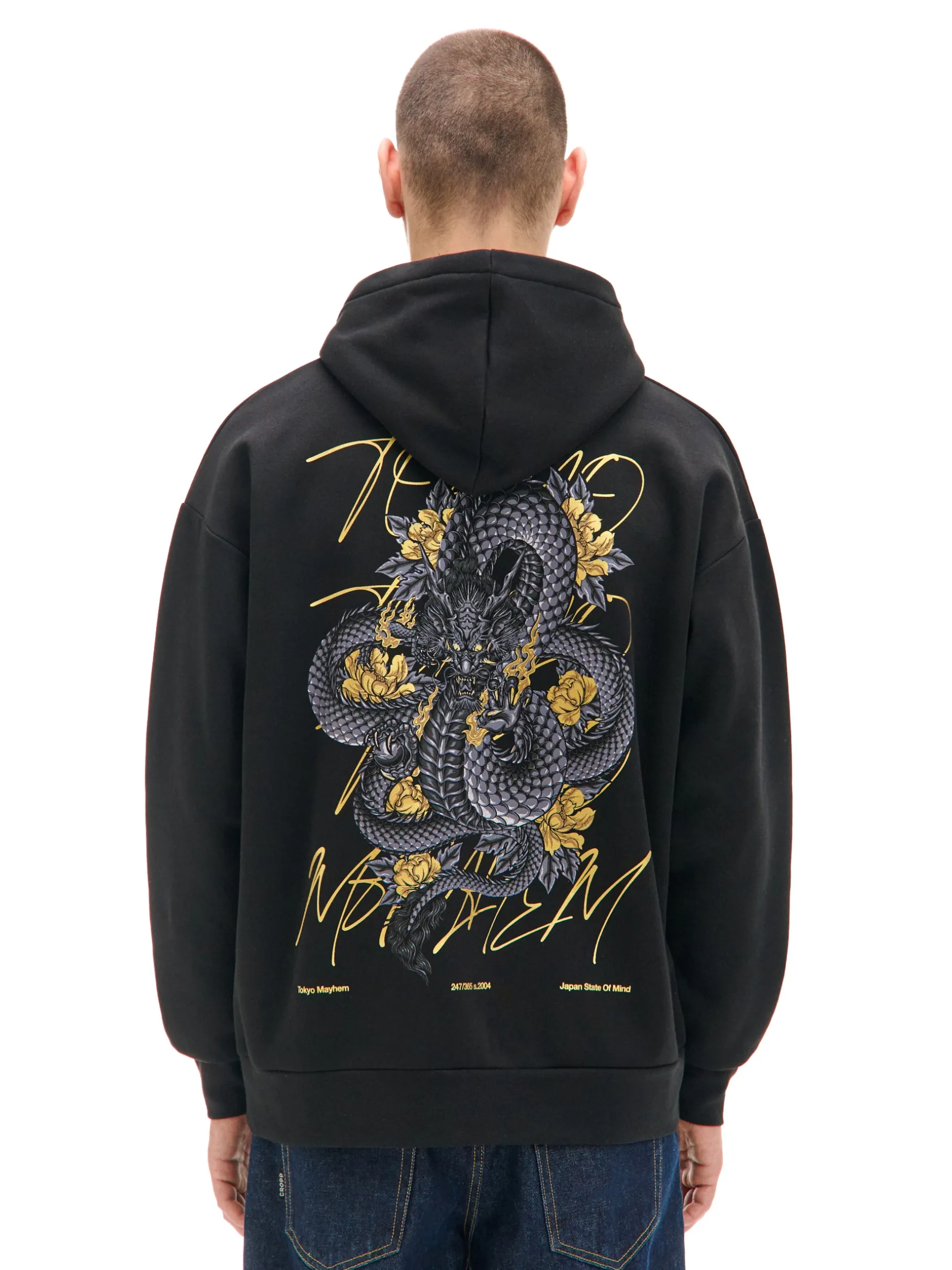 Bluza męska z kapturem o kroju loose, uszyta z mieszanki dzianin z dodatkiem miękkiej bawełny french terry. Z przodu drobny napis na piersi, a na plecach duży nadruk z motywem smoka. dzianinowy materiał z bawełną swobodny, luźny krój długie rękawy wykończone elastycznym ściągaczem obniżona linia ramion miękki kaptur kieszeń kangurka na przodzie dół wykończony delikatnym, prążkowanym ściągaczem mały nadruk na piersi, duży nadruk na plecach