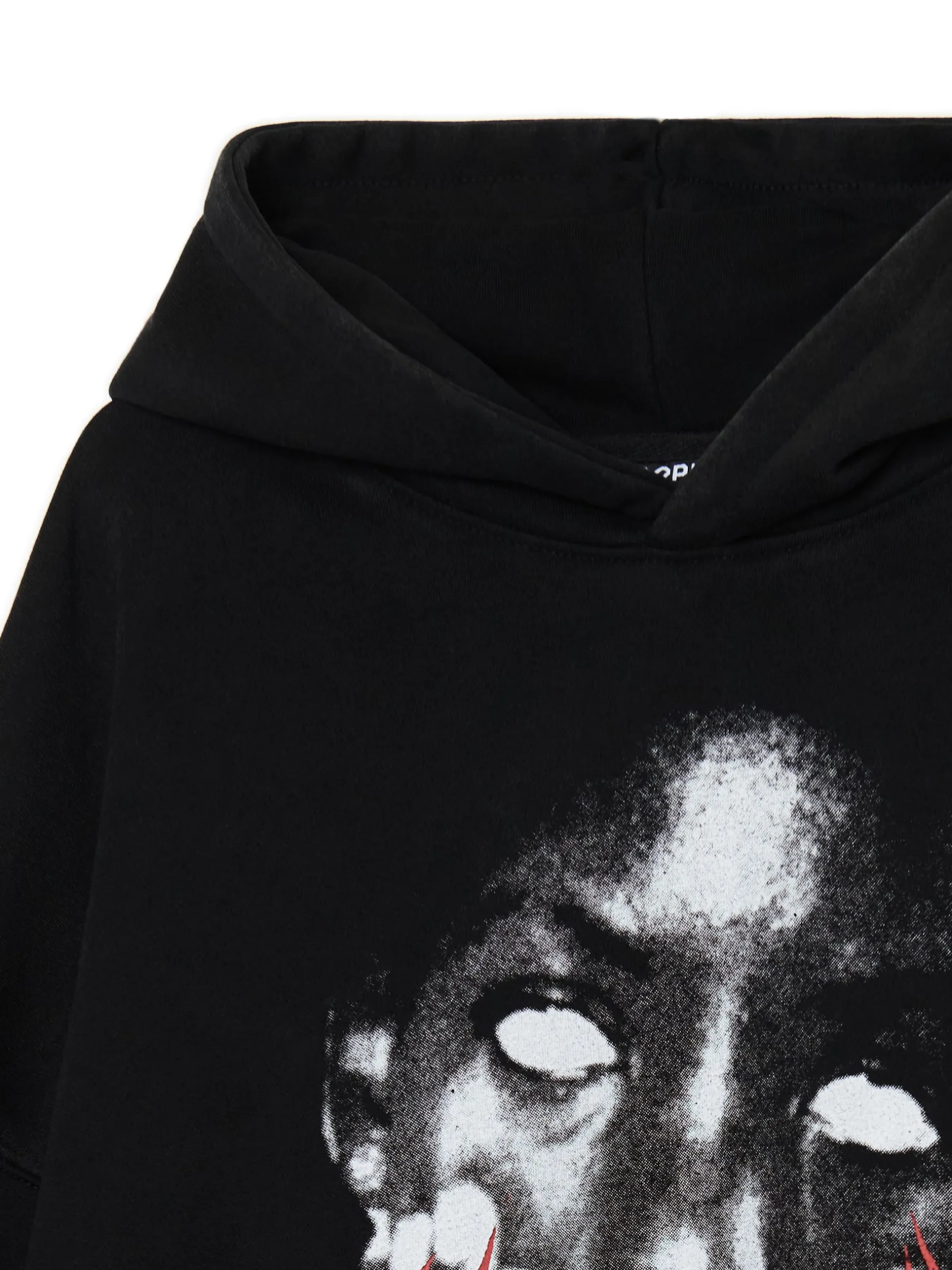 Jeśli szukasz casualowego outfitu na halloweenowy event, to mamy dla Ciebie tę czarną bluzę typu hoodie. Na całości nieregularny efekt odbarwienia i nadruk jak z horroru. Trick or treat? uszyta z miękkiej dzianiny z bawełną obszerny krój boxy szeroki kaptur dół i rękawy wykończone prążkowanym ściągaczem kieszeń kangurka na przodzie delikatny efekt sprania nadruk z motywem Halloween