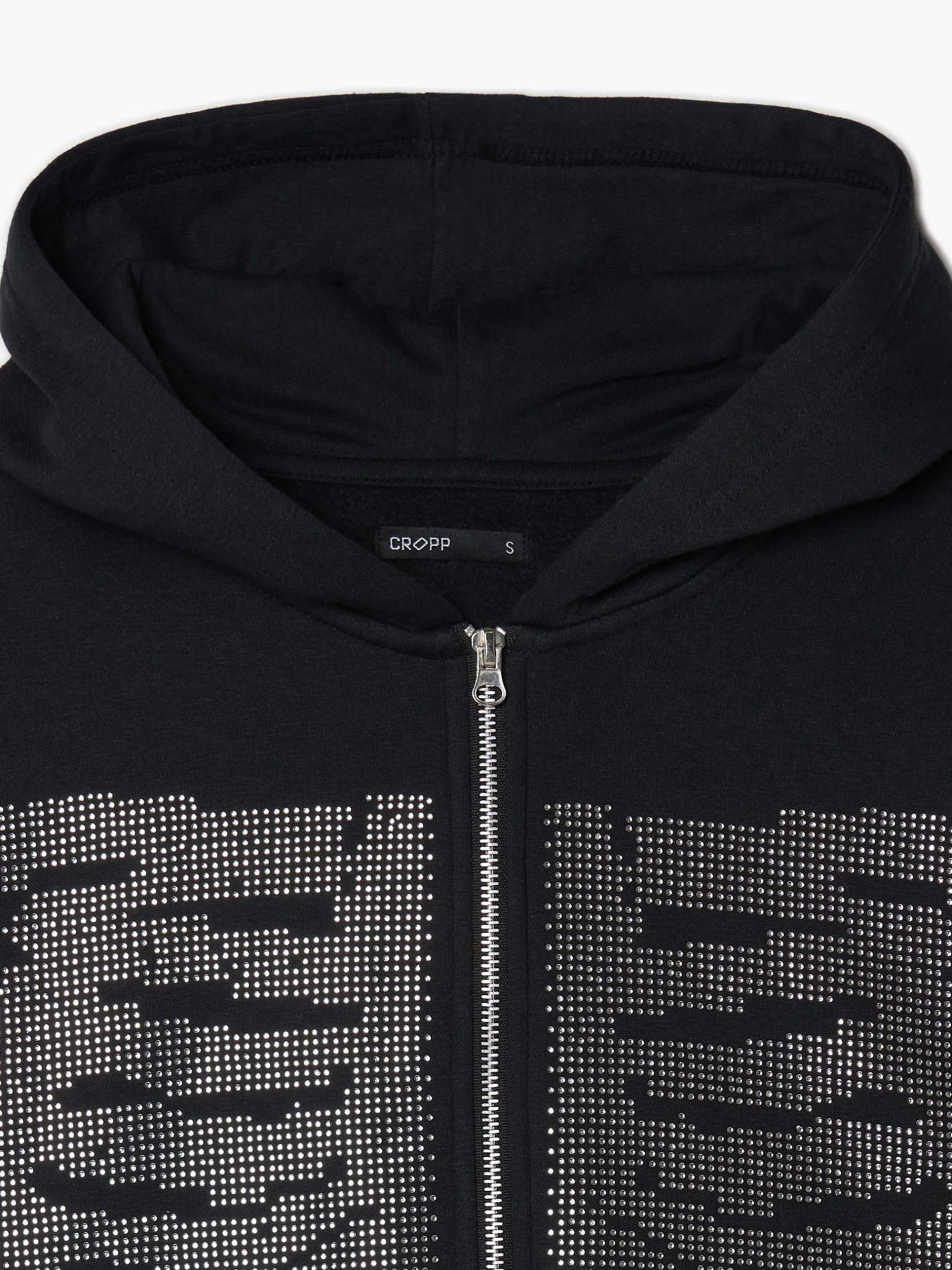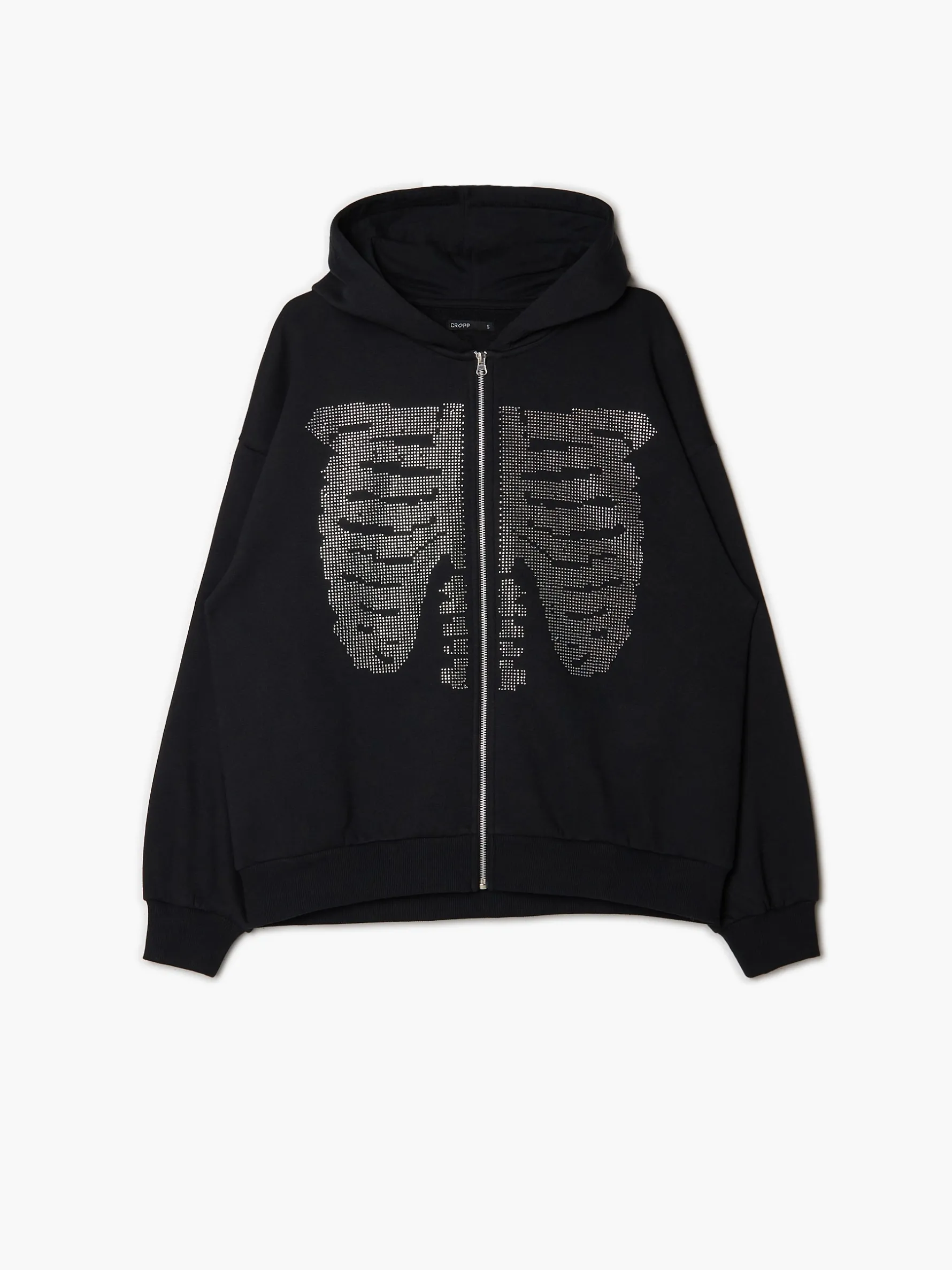 Damska bluza, uszyta z dzianiny zawierającej bawełnę. regularny krój zapięcie na suwak gładki kaptur rękawy i dół zakończone ściągaczem z przodu aplikacja z kryształków z motywem żeber
