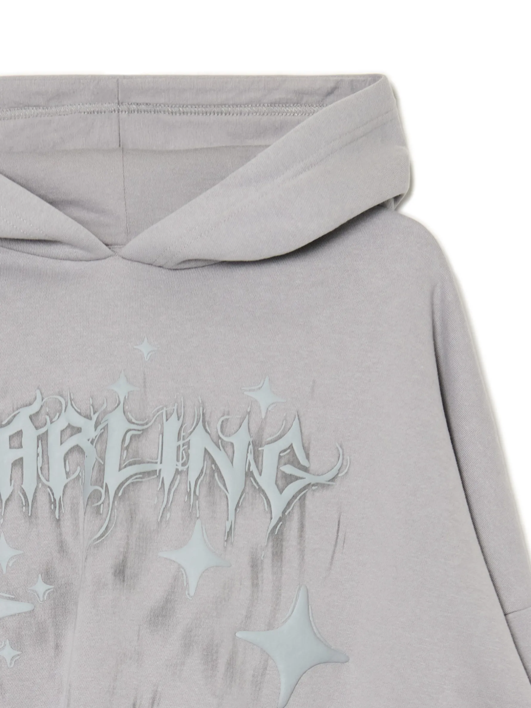 Damska bluza z kapturem uszyta z mieszanki dzianin z dodatkiem miękkiej i trwałej bawełny fleecy. Na przodzie delikatnie sprany nadruk z napisem. dzianinowy materiał z bawełną krótki krój dół i mankiety wykończone ściągaczami miękki kaptur duży nadruk z przodu Wzrost modelki: 177 cm