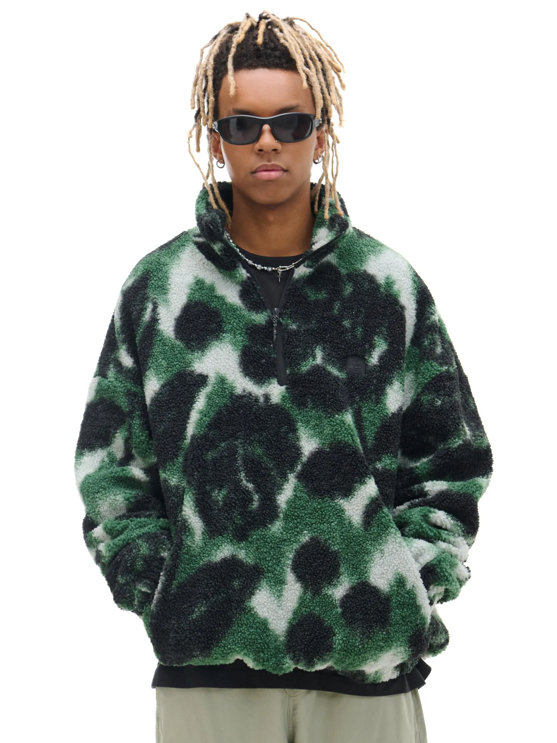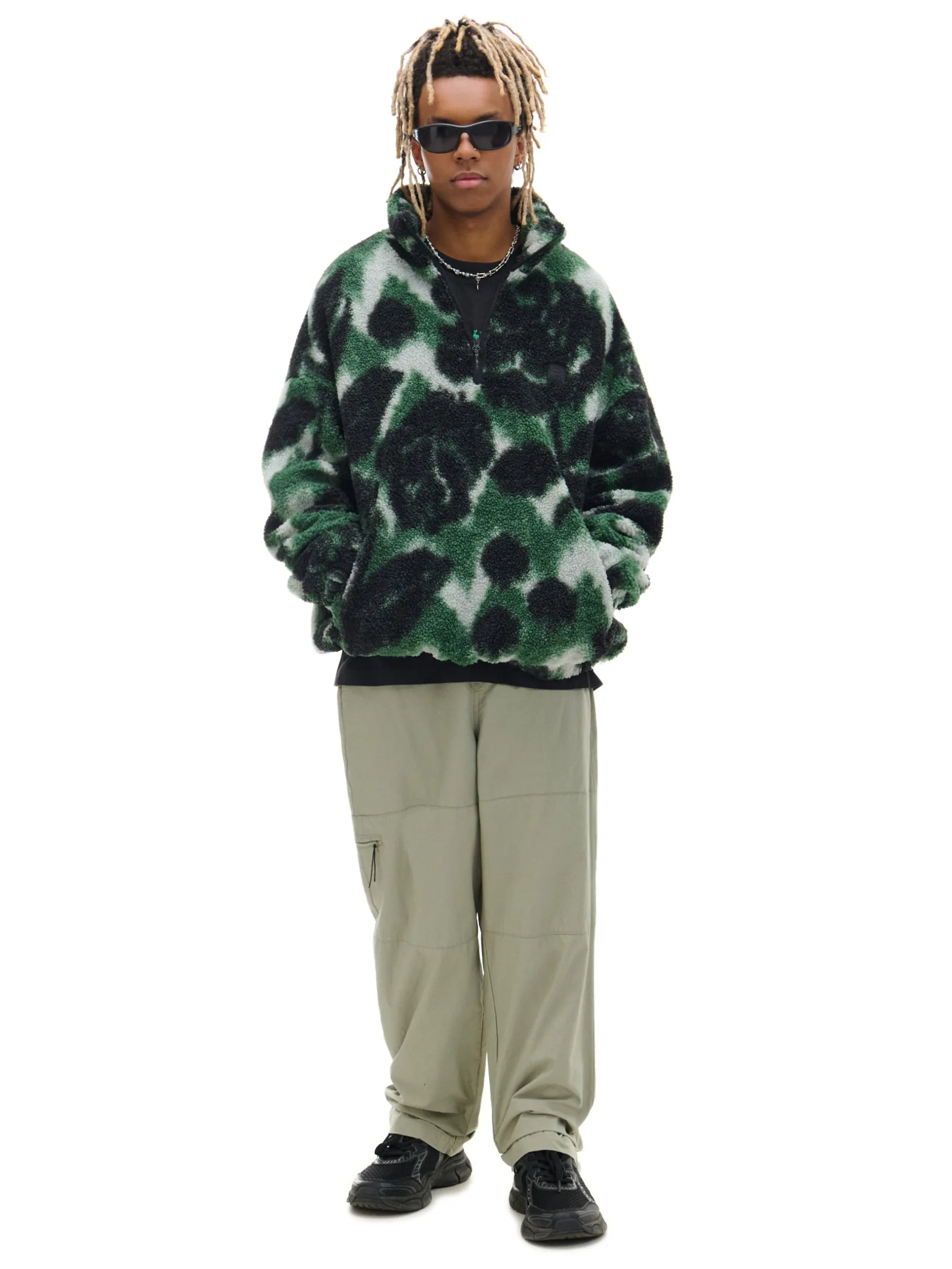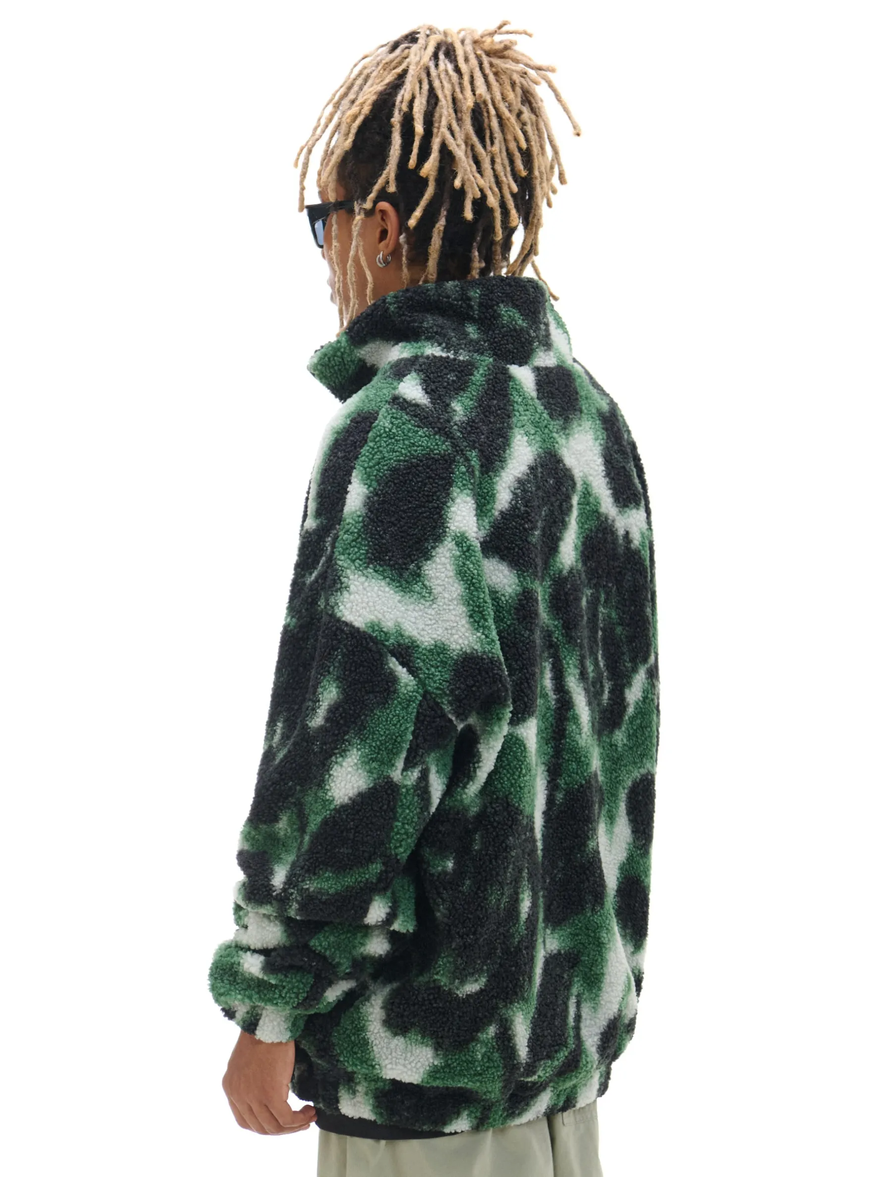 Bluza męska uszyta z imitacji baranka z mozaiki kolorów – zielonego, czarnego i białego. Od wewnątrz otuli Cię miękkie i przyjemne w dotyku wykończenie. Oldschoolowy item w nowoczesnym wydaniu specjalnie dla Ciebie. bluza typu sherpa o regularnym kroju uszyta z miękkiego, pluszowego materiału wykończenie na podszyciu ze sztucznego baranka stójka zapinana na suwak długie rękawy zakończone gumką otwarte kieszenie po bokach efekt tie-dye na całości naszywka Cropp