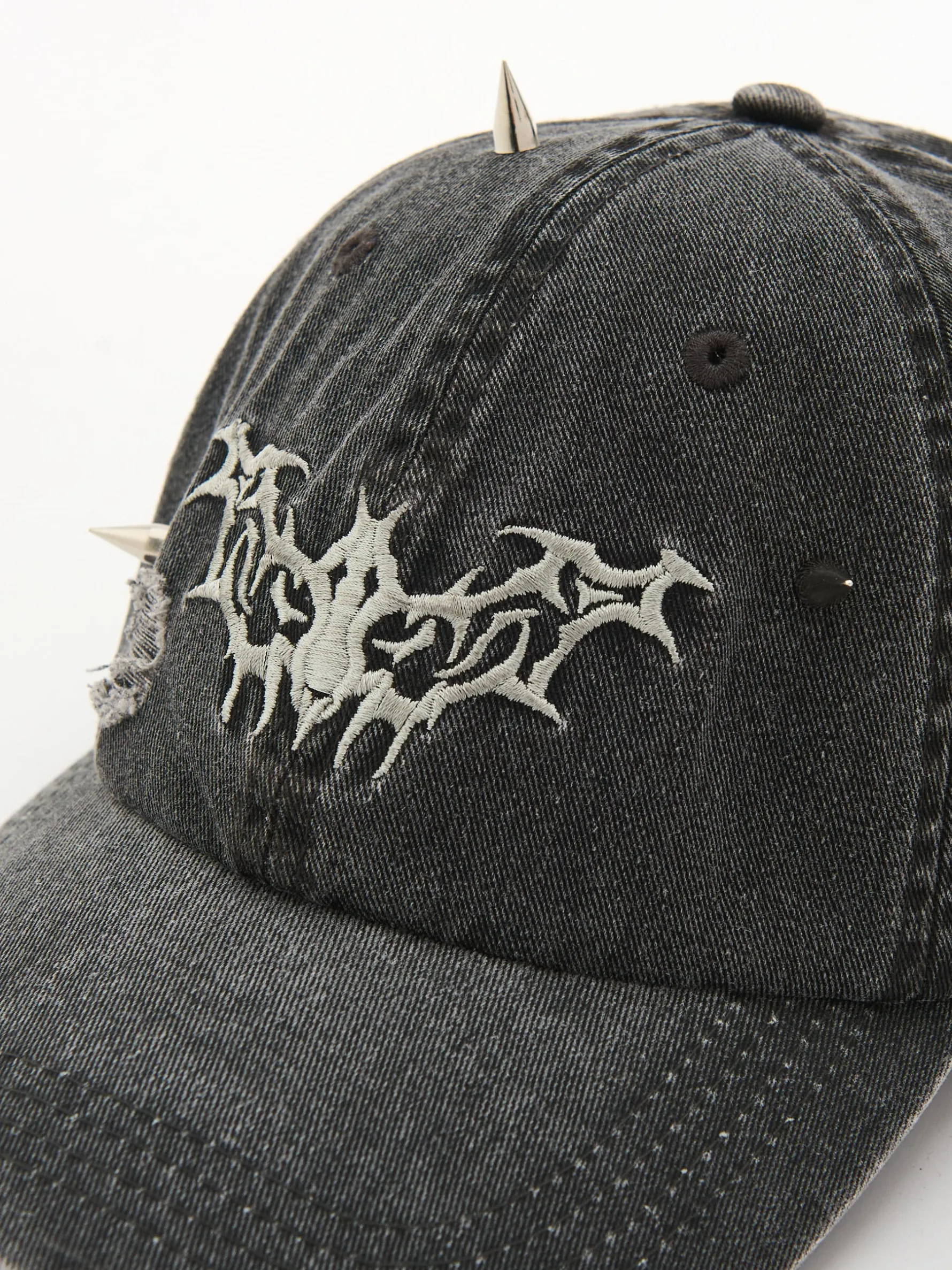 Damska czapka z daszkiem, uszyta z bawełny w szarym kolorze z efektem sprania. Dekoracją są metalowe ćwieki, przetarcia, postrzępienia i ozdobny haft na przodzie. 100% bawełny dół z regulacją obwodu efekt sprania na całości ozdobne przetarcia i postrzępienia na środku dekoracyjny haft metalowe detale