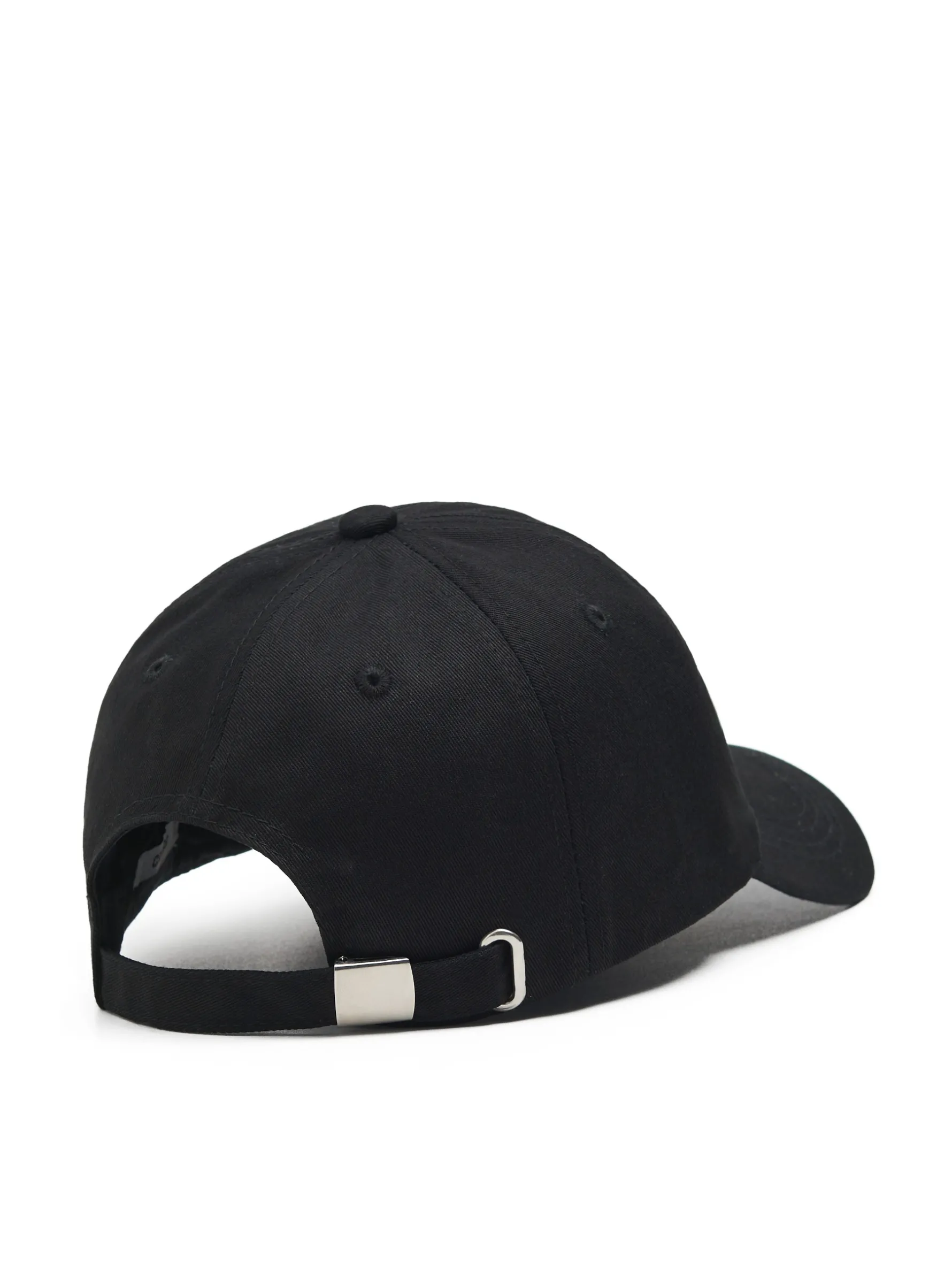 Damska czapka z daszkiem, wykonana z czarnej dzianiny. Gładki materiał z zapięciem z tyłu umożliwiającym regulację obwodu fituje z wieloma stylizacjami. uszyta z gładkiej, bawełnianej dzianiny możliwość regulacji szerokości obwodu, dzięki zapięciu regulowany pasek z klamrą zatrzaskową daszek typu basic