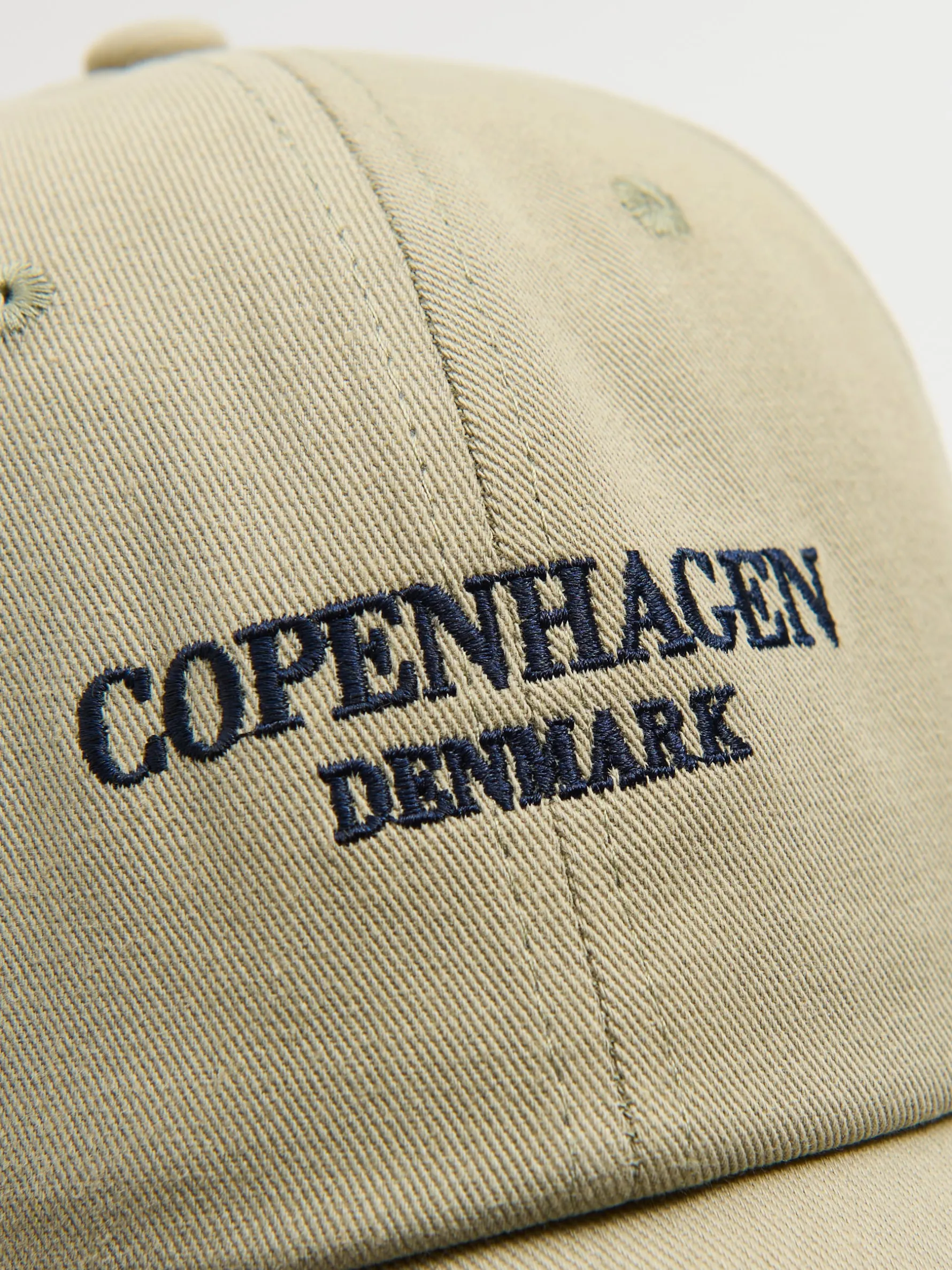 Damska czapka typu bejsbolówka, uszyta z bawełnianej tkaniny. profilowany daszek możliwość regulacji obwodu za pomocą paska haft z napisem COPENHAGEN DENMARK