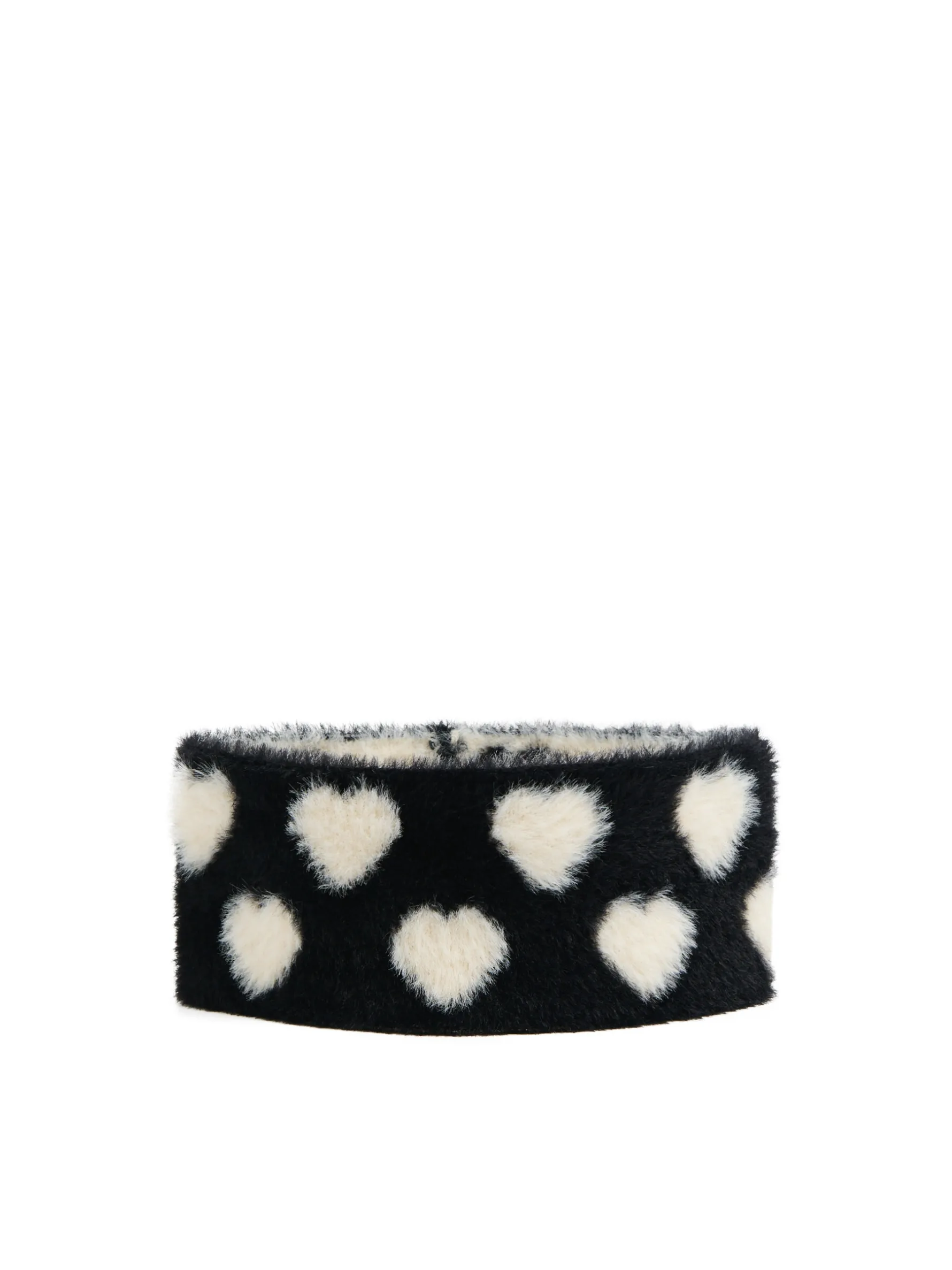 Szeroka damska opaska wykonana z przyjemnego w dotyku pluszowego materiału z kontrastowym nadrukiem w serca na całej powierzchni. Ochroni Twoje uszy przed zimnem! uszyta z miękkiego, pluszowego materiału dopasowany krój wzór w serca na całości