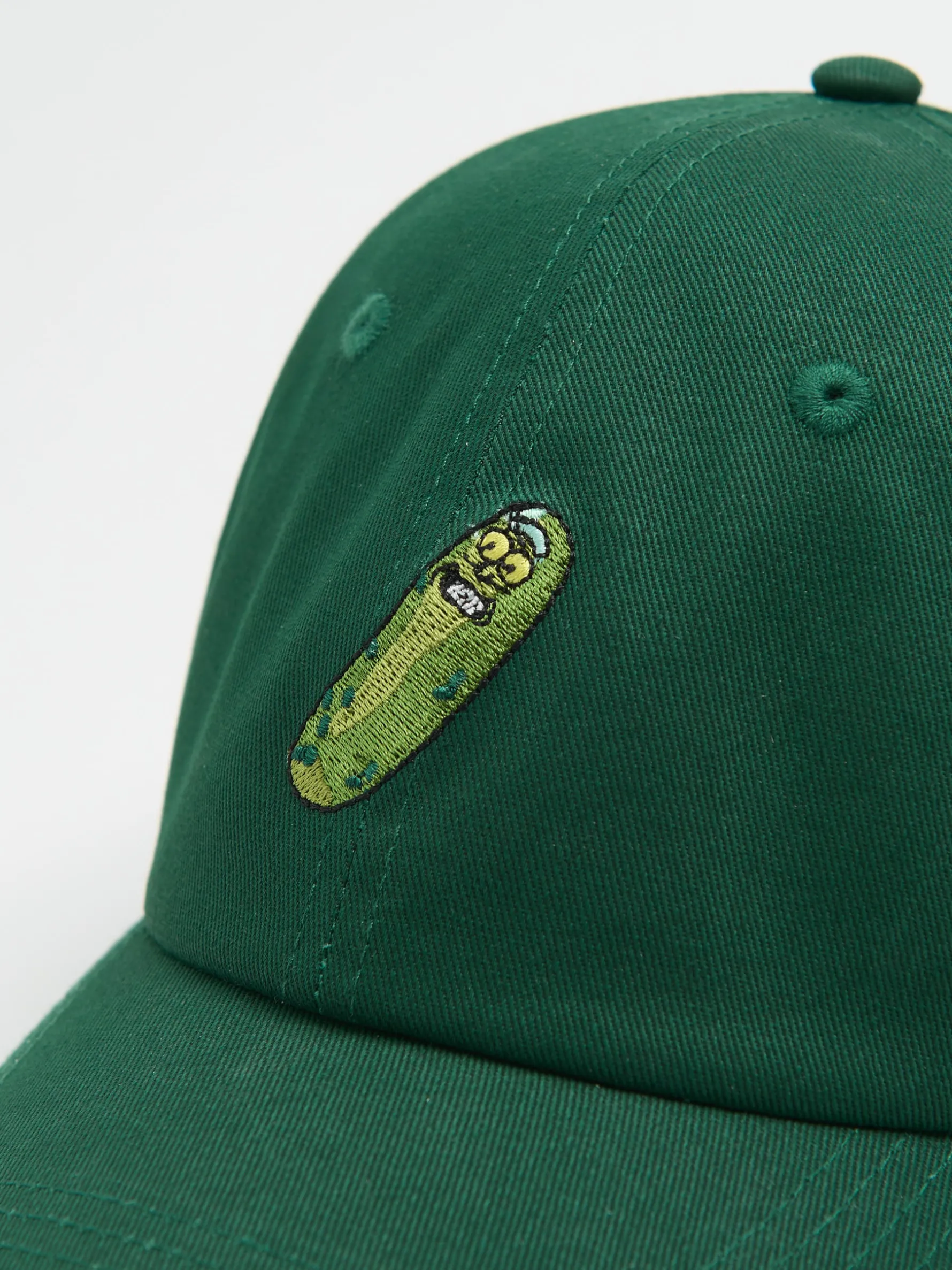 Męska czapka z daszkiem typu bejsbolówka, uszyta w 100% z bawełny. Must-have na upalne lato i wakacyjne wyjazdy! profilowany daszek regulacja obwodu za pomocą paska z klamrą z przodu haft z motywem Ogórricka z serialu Rick i Morty RICK AND MORTY and all related characters and elements © & TM Cartoon Network. WB SHIELD: © & TM WBEI. (s24)
